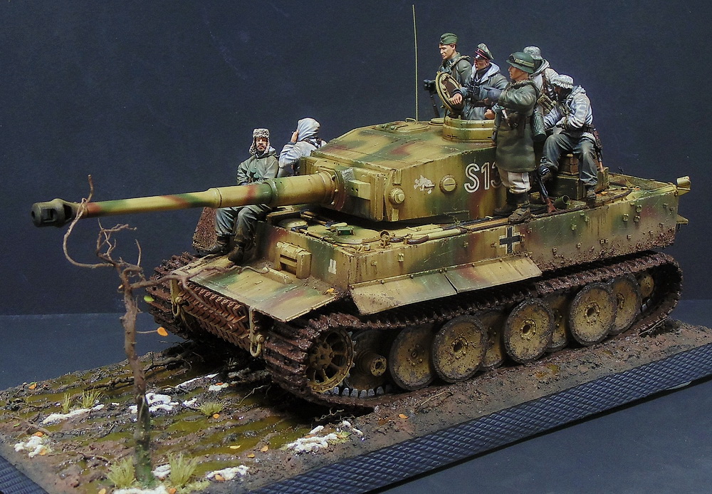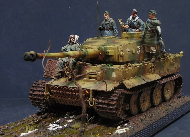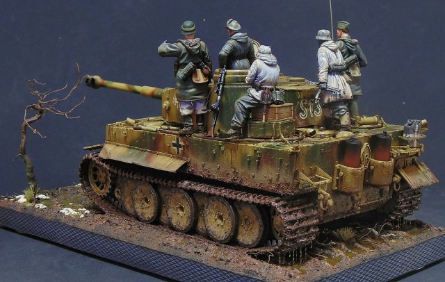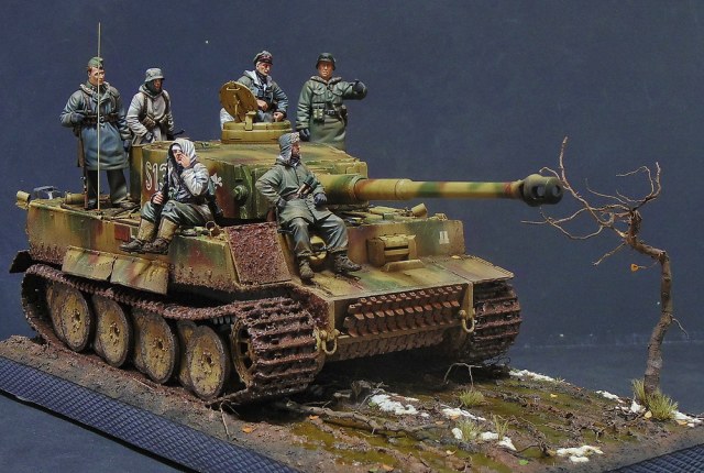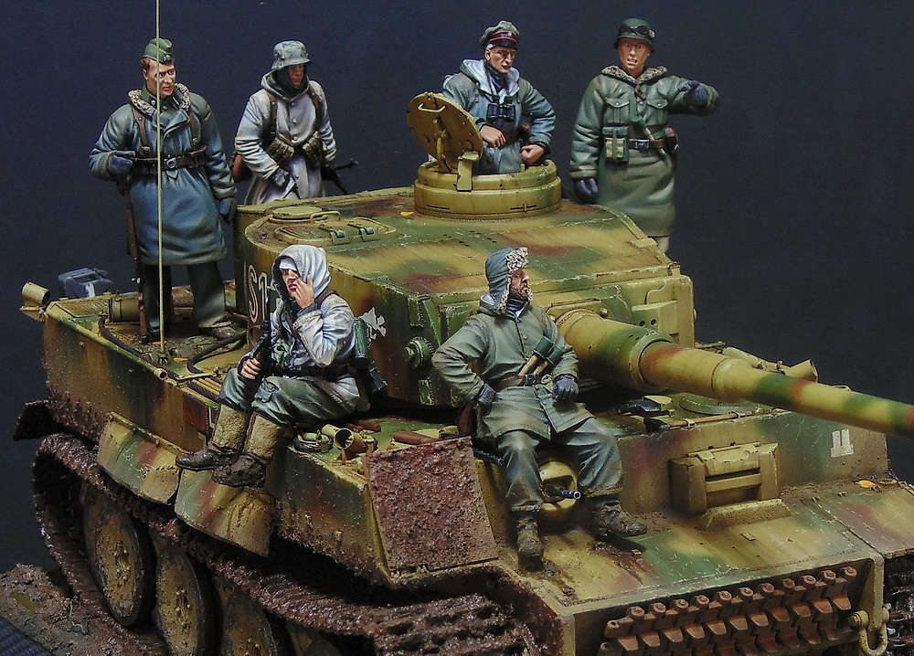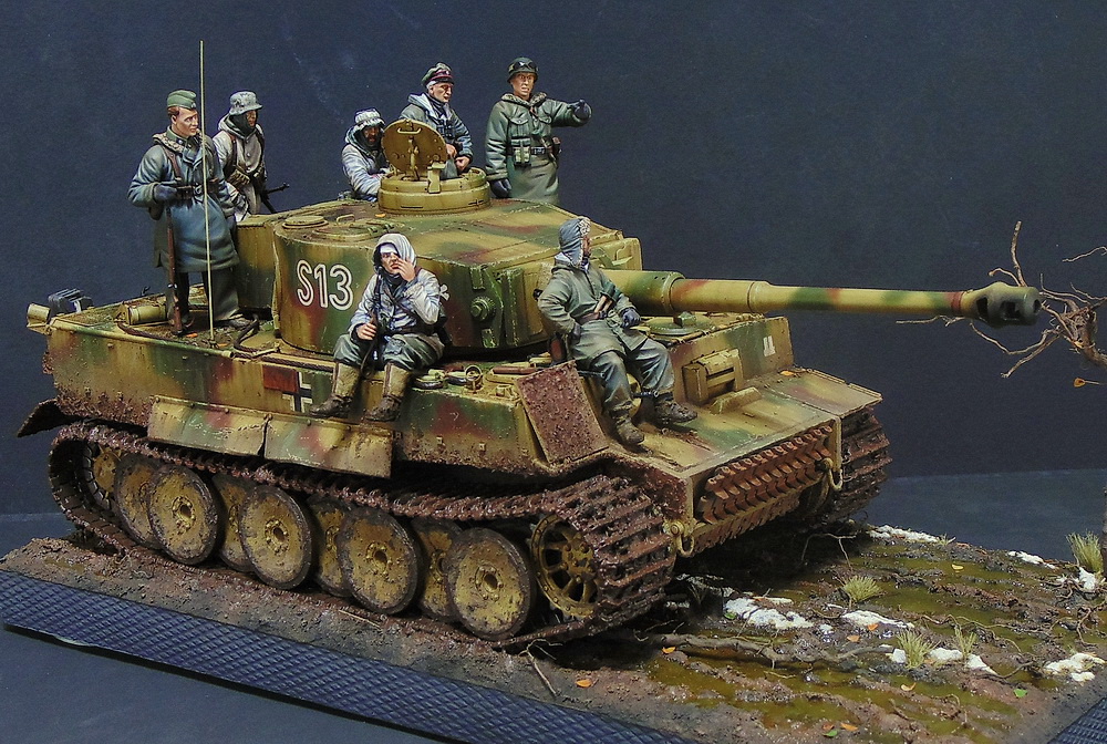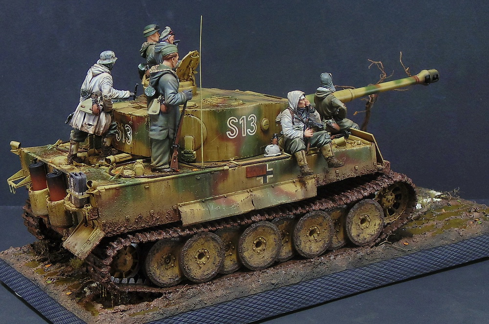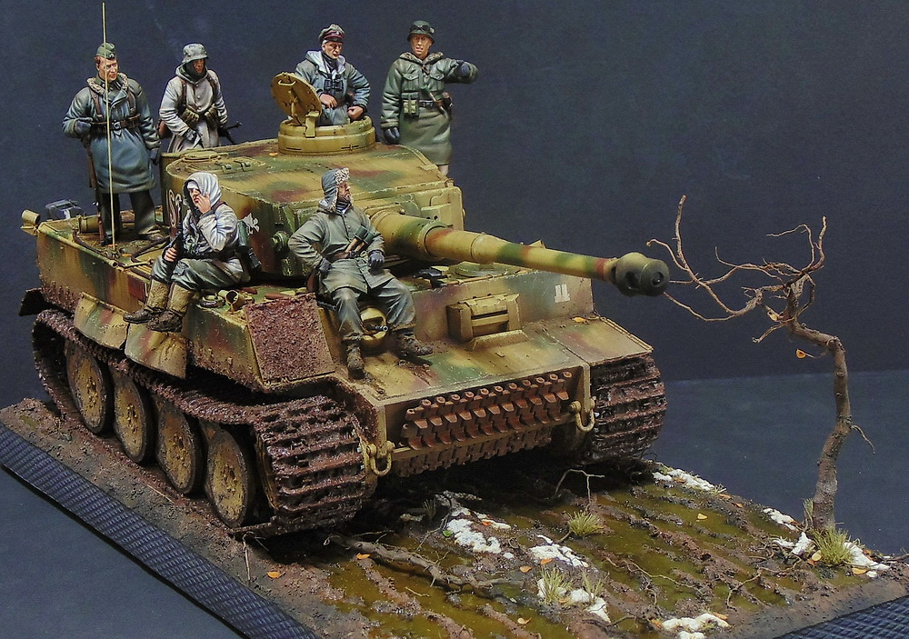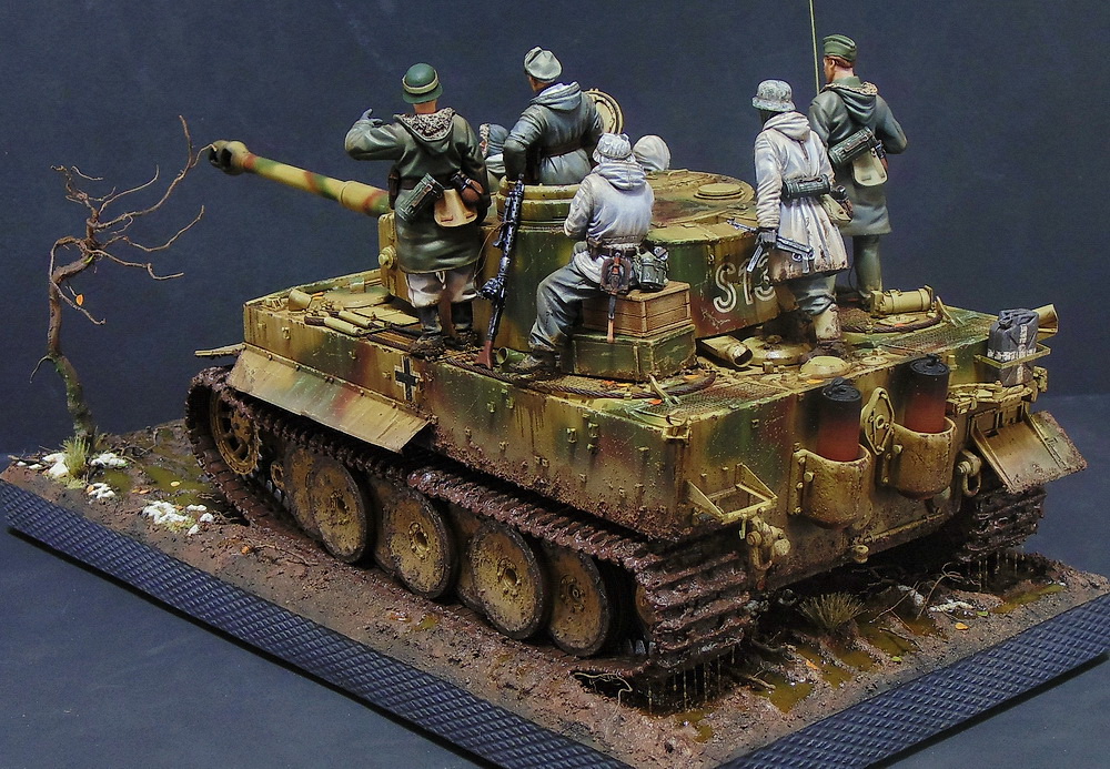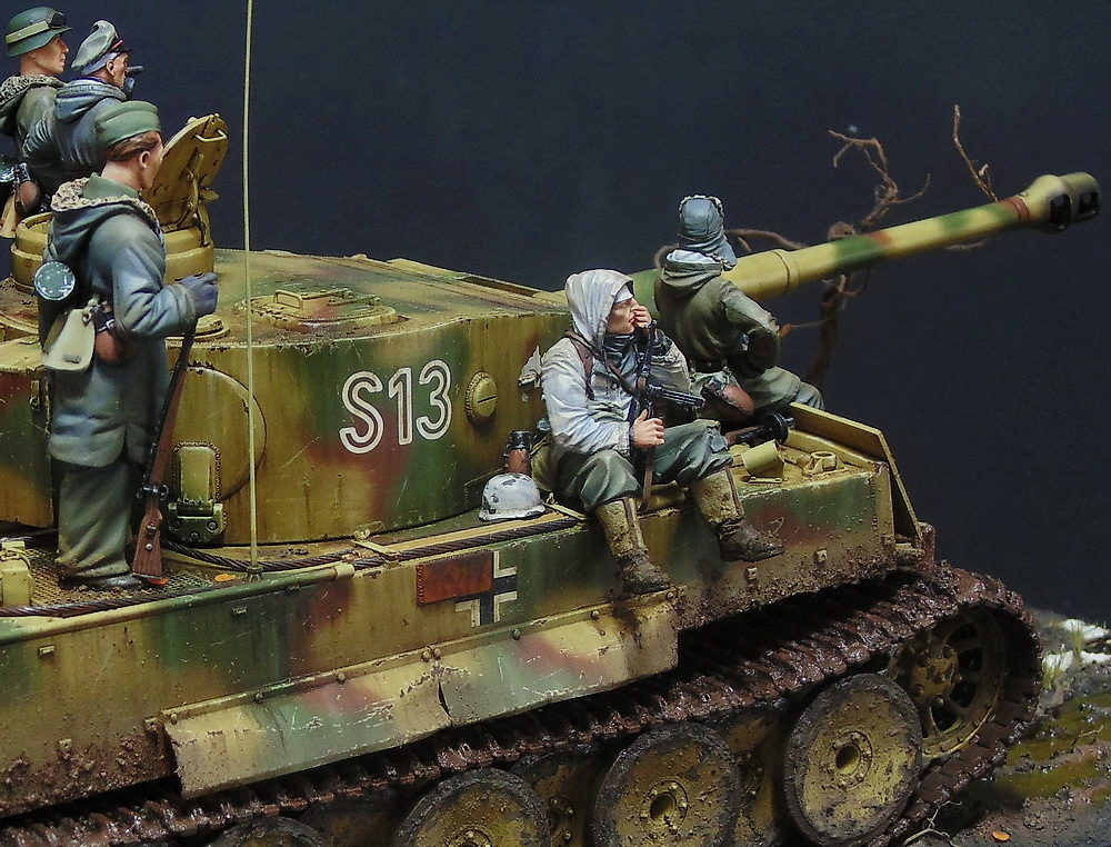 Для работы использовал набор от Academy , фигуры от Evolution Miniatures и Verlinden Productions . Красил Тамией , Мастер - Звездой , пигменты - Мастер - пигмент . Подставку заливал из гипса , вода - эбокситный клей , снег - сода с ПВА .
