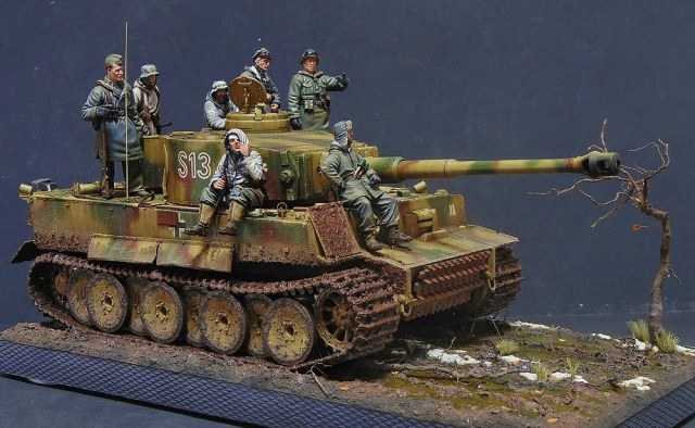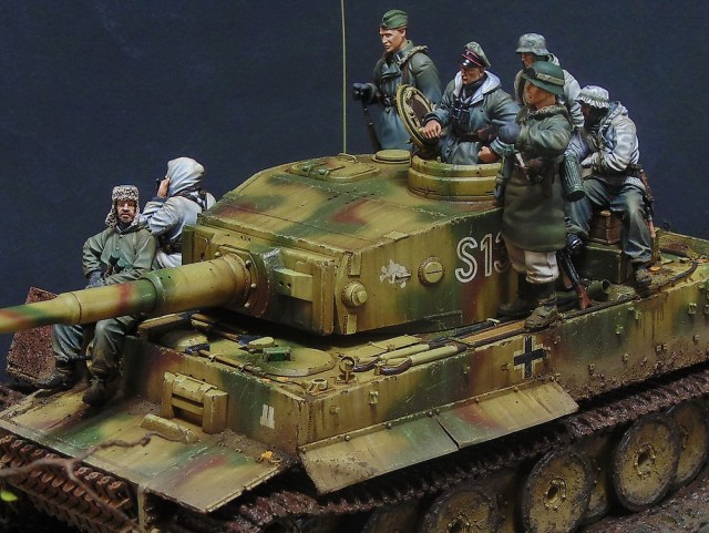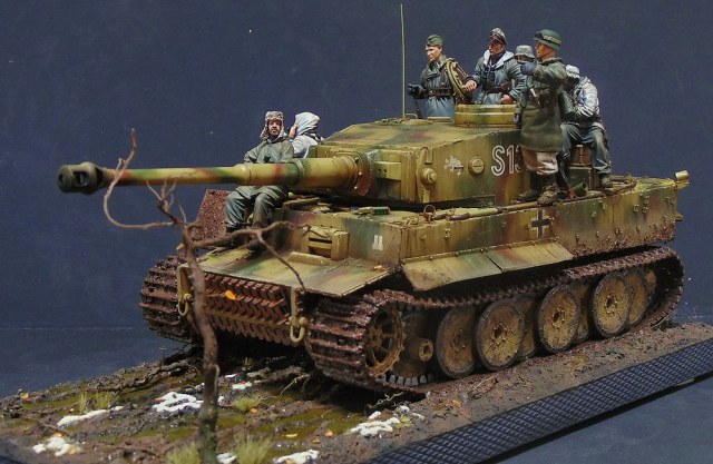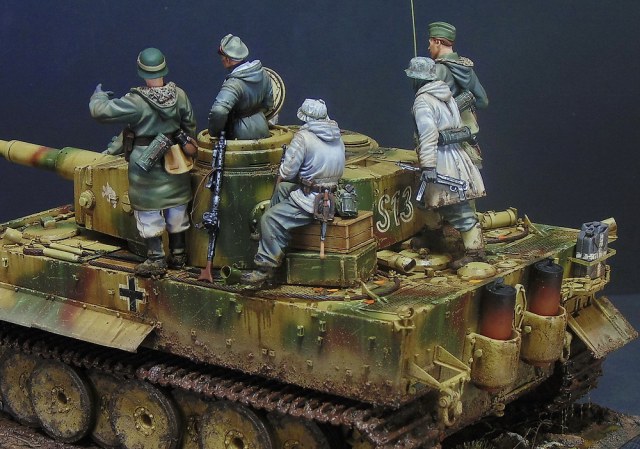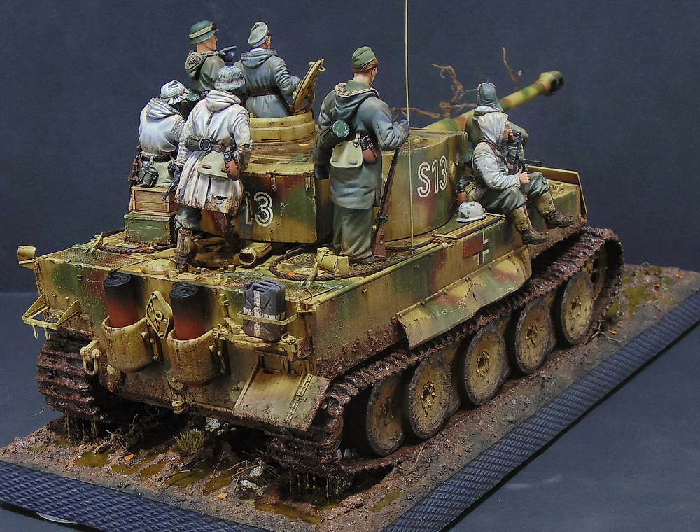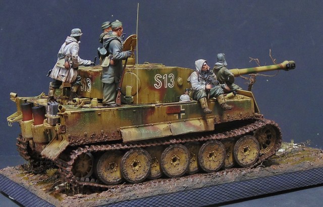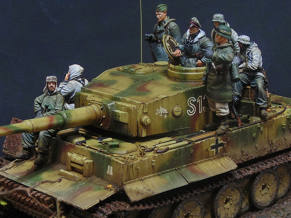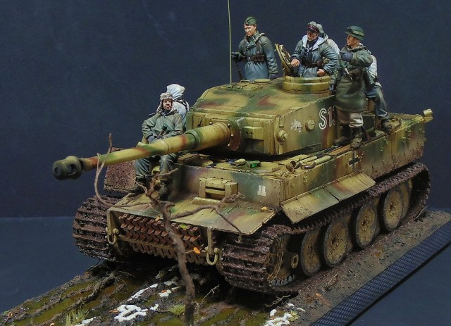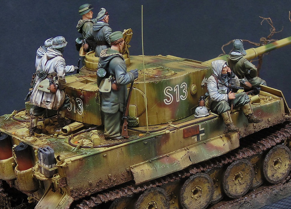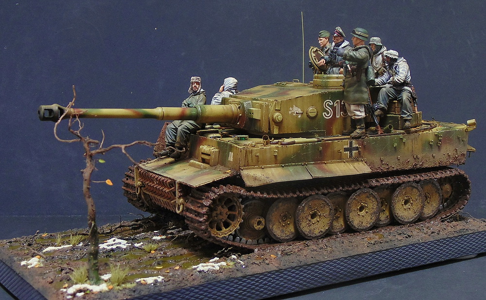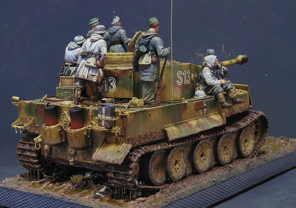 Для работы использовал набор от Academy , фигуры от Evolution Miniatures и Verlinden Productions . Красил Тамией , Мастер - Звездой , пигменты - Мастер - пигмент . Подставку заливал из гипса , вода - эбокситный клей , снег - сода с ПВА .