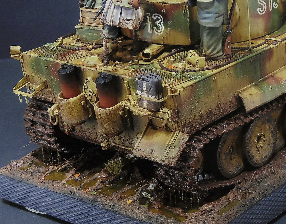 Танк по ходу не движется потому и вода просто стекает с гусей, да и фигурки по бокам башни стоят не держась,а за одним пулемёт просто навален на неё.