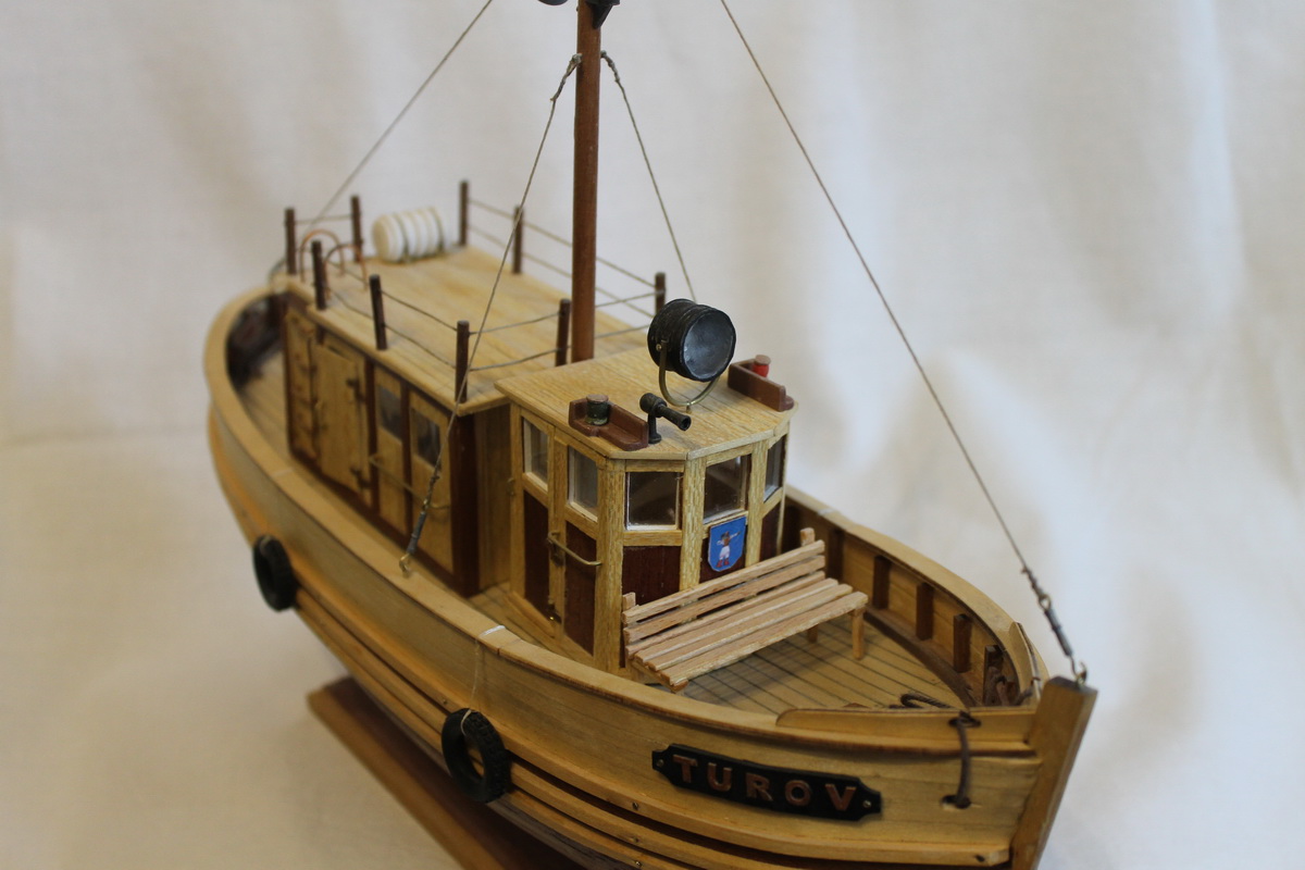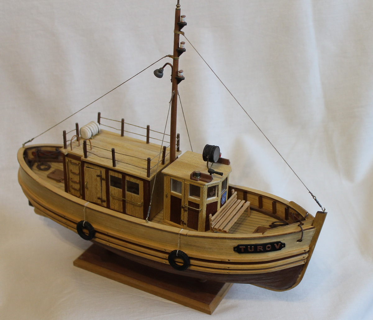 Здравствуйте! Решил показать здесь может и не старую,но довольно не новую свою модель,это яхта ТУРОВ,первая моя модель из дерева.Изначально-это krabben kutter Bremen от Artesania Latina в масштабе 1/35. Т.к. это первая модель из дерева,было много сложностей с корпусом,с такелажем, о чем мои вопросы,да и вообще форум о модели здесь http://www.shipmodeling.ru/phpbb/viewtopic.php?f=32&t=6229