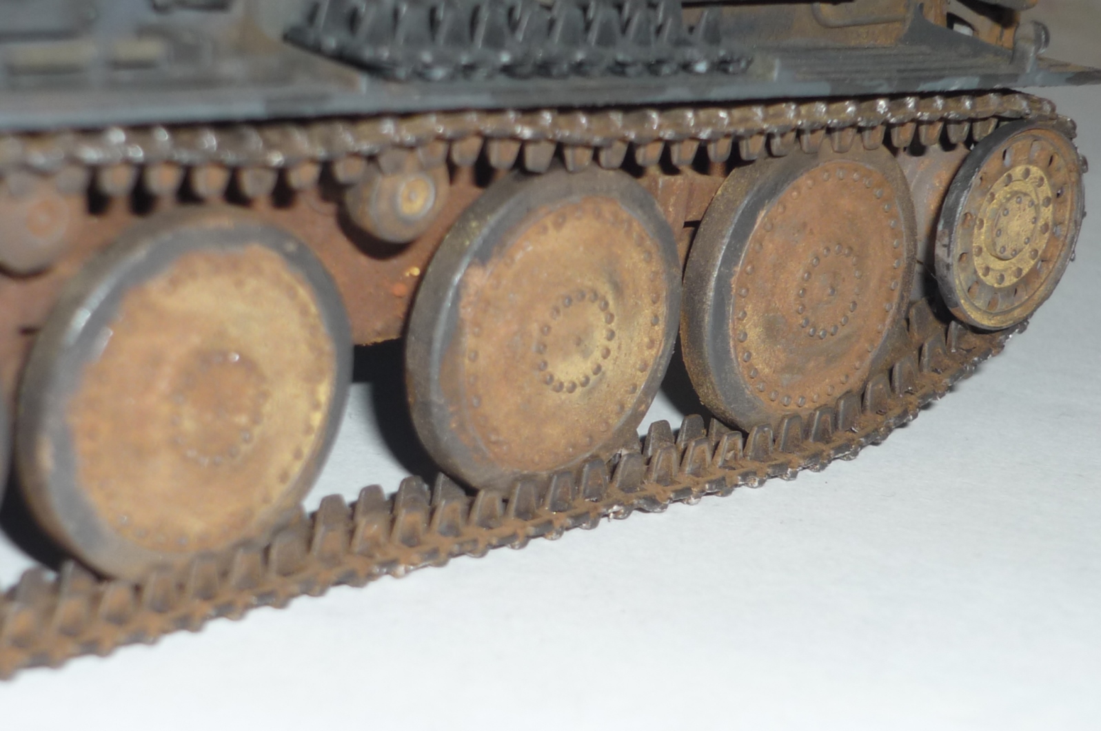 видно, что работа с потенциалом, но бросается в глаза - перебор с мет. сколами и потёртостями. такое впечатление, что танк из алюминия. вам надо бы подобрать краску под метал...