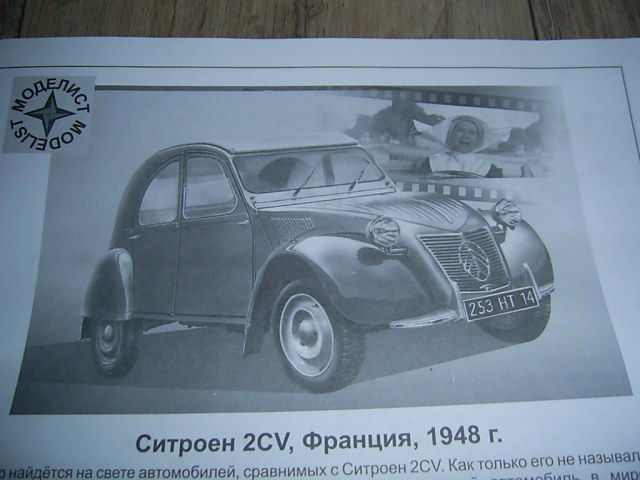 Всем привет! Представляю вашему вниманию модель автомобиля Ситроен 2CV от Моделиста в масштабе 1:43. В наборе идут литник с деталями, имитация остекления и декаль.