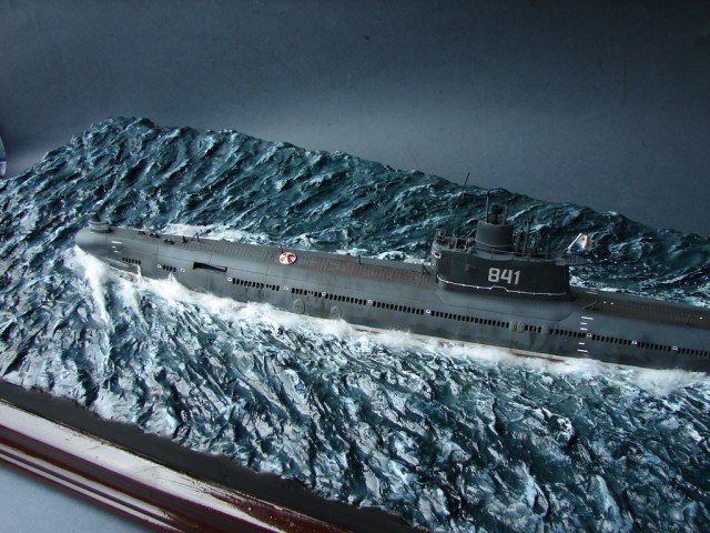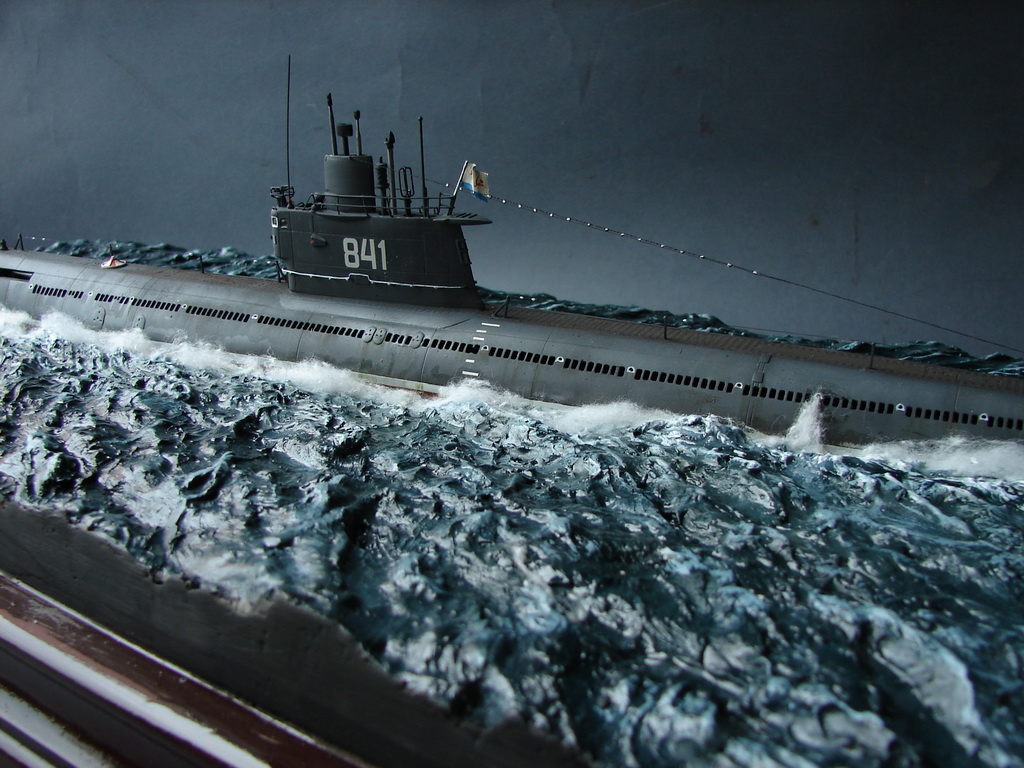 Лодка от Моделиста(Трумпетера)При малом кол-ве деталей,потребовала довольно много переделок.(Совершенно не знаком с матчастью подлодок.Так,что делал по малочисленным фото,которые выудил из сети.Травление не рассматривалось из-за цены вопроса.(Что касается номера-то такого не существовало.Насколько мне известно,то номера лодок 633 проекта заканчивались 700 ми номерами.