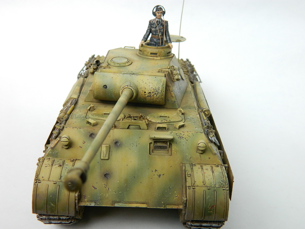 Уважаемые коллеги,позвольте представить Вам полюбившуюся многим модель Пантеры от Звезды. Присоединяюсь к положительным о ней отзывам. Сборка с минимальными дополнениями типа проводки,самодельных сеток и козырька над левым люком.Танкист от тамиевской тройки.Краска и смывка Тамия,древнее масло,минимум пигментов.