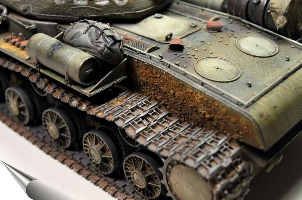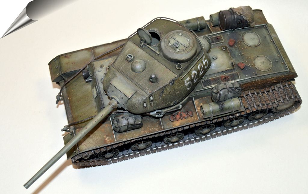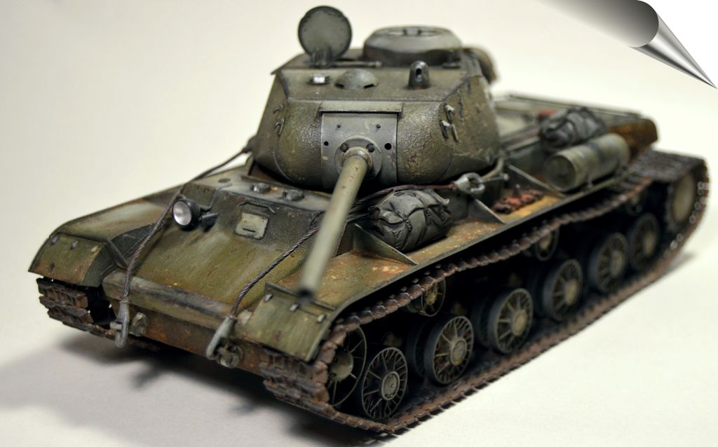 Всем привет! Представляю вашему вниманию свое видение танка КВ-85 от фирмы Bronco Models. Модель собрана почти полностью из коробки. Никаких доработок не делал. Добавил фару от «Эльф», бочку от этой же фирмы что и модель, баклажу от неизвестной фирмы. Окраска традиционная. Поверх серой тамиевской грунтовки нанесен слой затемнений по швам и углублениям. Затем нанесена база и высветление тамиевскими акрилами. Тонировал художественным маслом, смывка «Тамия», фильтры «WILDER», пигменты разных производителей («Мастер пигмент», «MIG Productions», «ZIP-maket» и т.д.).