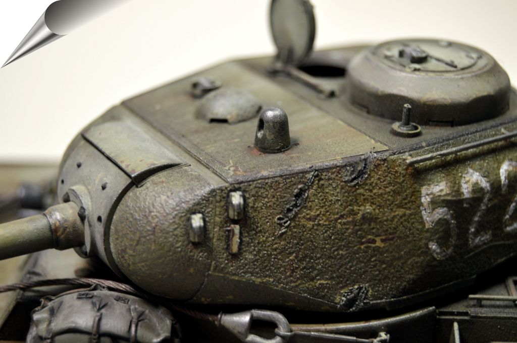 Потёртости и побитость танка удалась однозначно. На ракурсах спереди чувствуется металл/броня - весчь. Очень заезжанный танк. Кстати один из тех что был в Севастополе.
