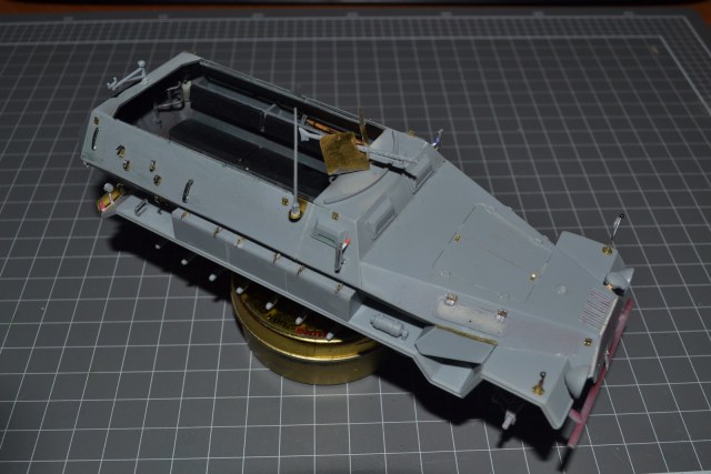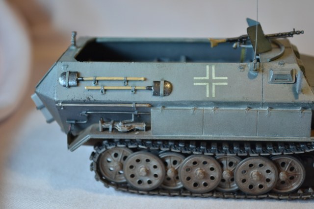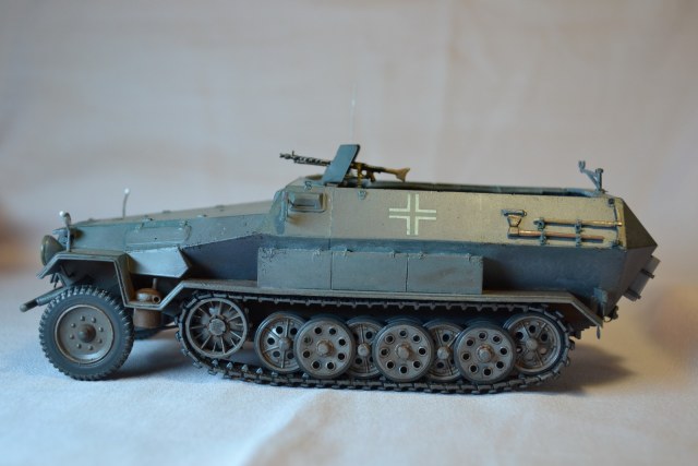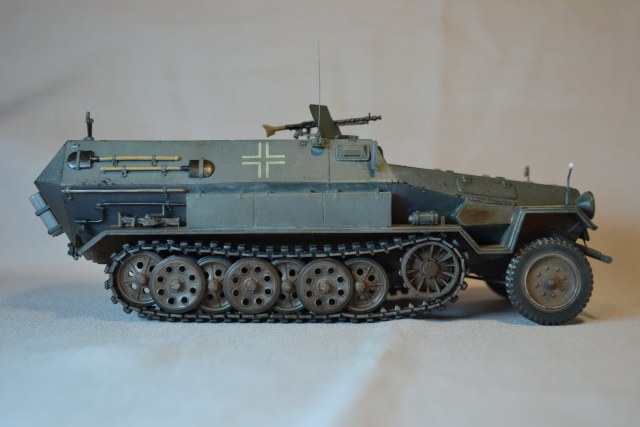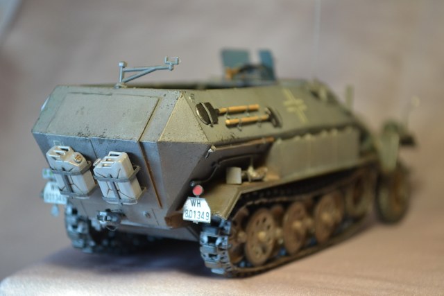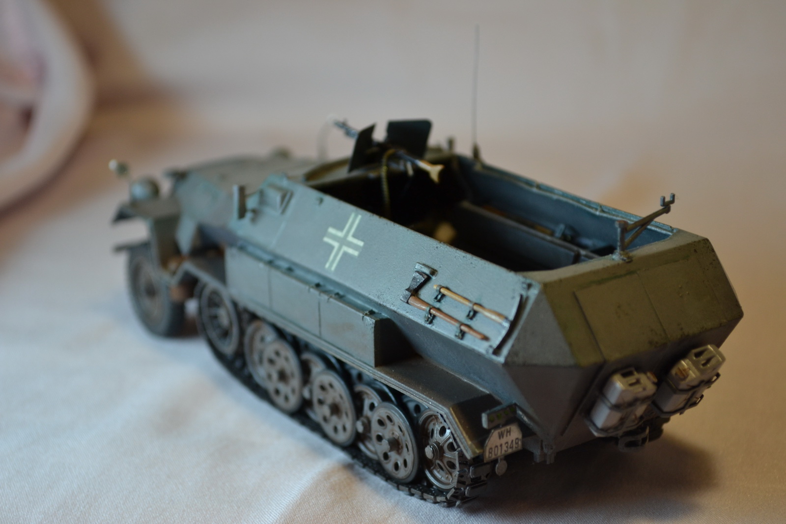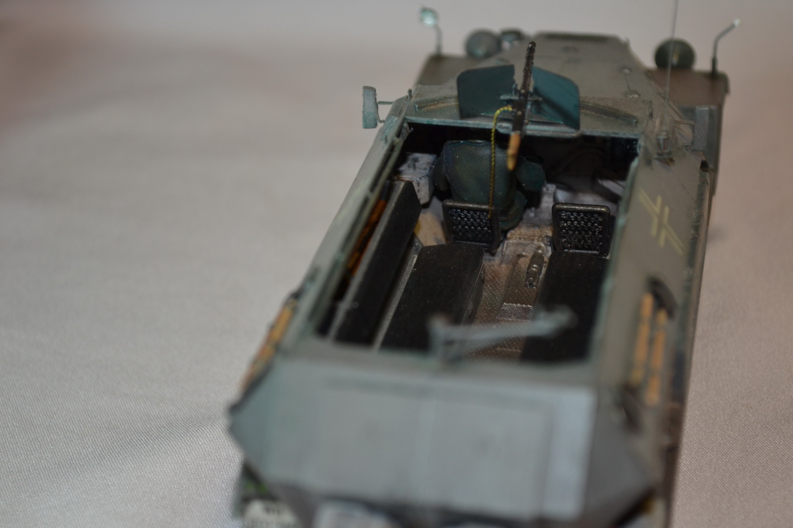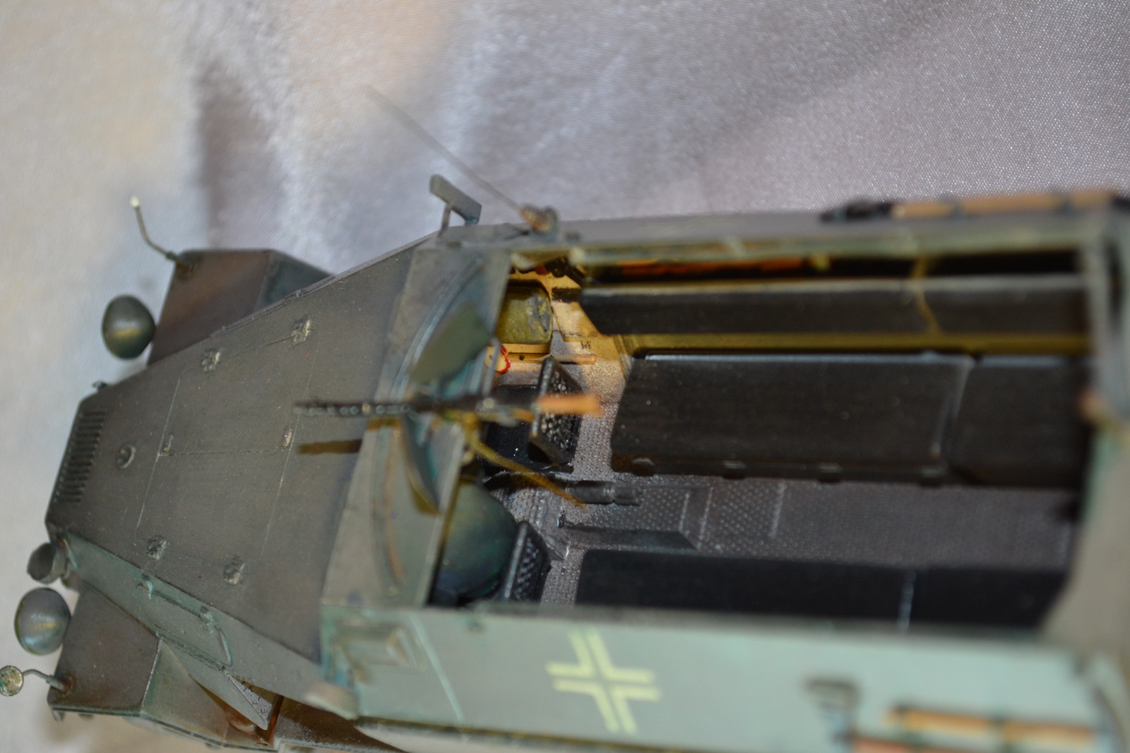 Мой почтение каропчанам) Представляю на Ваш строгий суд замученный мной БТР. Исходная «каропка» - известный набор от Звезды 3572. Так как, у исходника был установлен ряд отличий от реальных прототипов мода ausf. B, то большинство узлов и украшений были доработаны с помощью фольги, проволоки, литников и набора травления от Мира Моделей ММТ35003 1/35 фтд Sd.Kfz.251/3. С прицелом на будущую диораму посадил за баранку «Ганса» (опять-таки от Звезды набор 3585) – пришлось его долго вгонять в габариты (при том, что весь фарш салона, включая рулевое колесо, на момент подгонки был удален). На мой взгляд, сей «Ганс» явно крупноват.