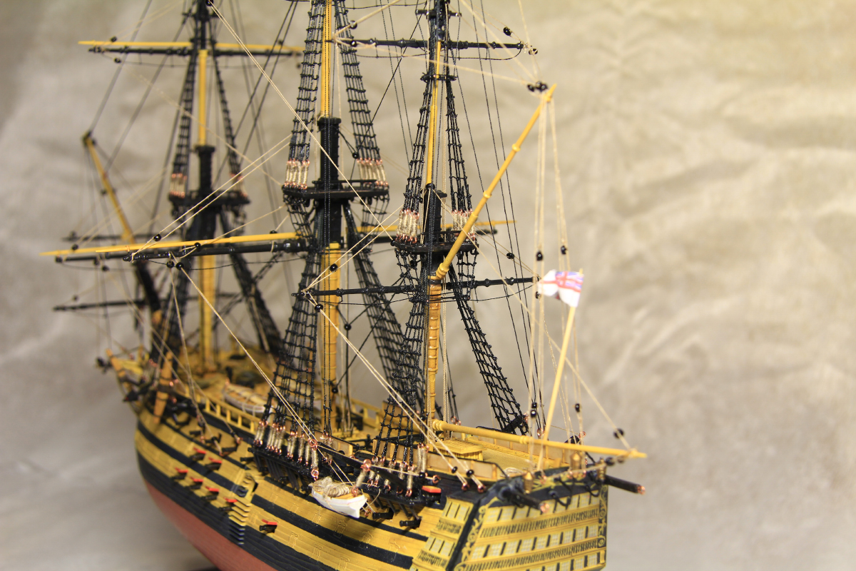Попытка осилить модель корабля H.M.S. Victory. Об этом корабле много сказано и написано, поэтому не буду останавливаться на его истории. При постройке возникли проблемы с соблюдением масштаба некоторых деталей и прочие. При стройки использовал краски от Mr.Hobby, самопальную смывку, зубочистки и иглы(для мачт), медная проволока и прочее. Качество отливок на среднем уровне. Убило наличие логотипа фирмы на палубе, а также имитация канатов на той же палубе. Что получилось судить вам!