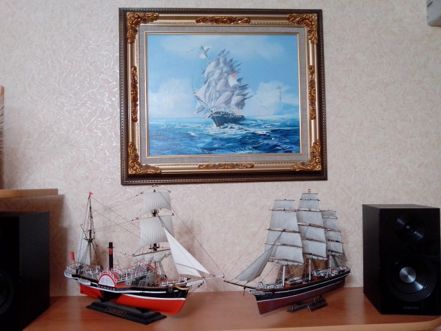 Поэтому у меня появилось острое желание доделать ее как можно быстрее и отдать родителям, пока есть, что отдавать ))) Родители же очень довольны, как получился корабль, не видят никаких огрехов, все им очень нравится. Удивляются, как можно такое вообще собирать. Я рад, что им понравилась моя модель, а значит и старания мои были не напрасны. Пусть будет так! )