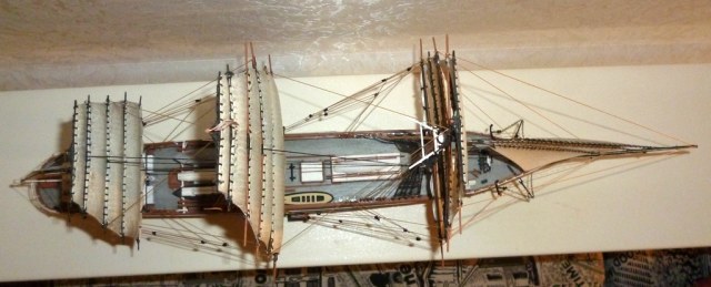 В конечном итоге, модель получилась очень хрупкой, в процессе сборки и привязывания парусов постоянно что-то отламывалось, отрывалось и т.д.