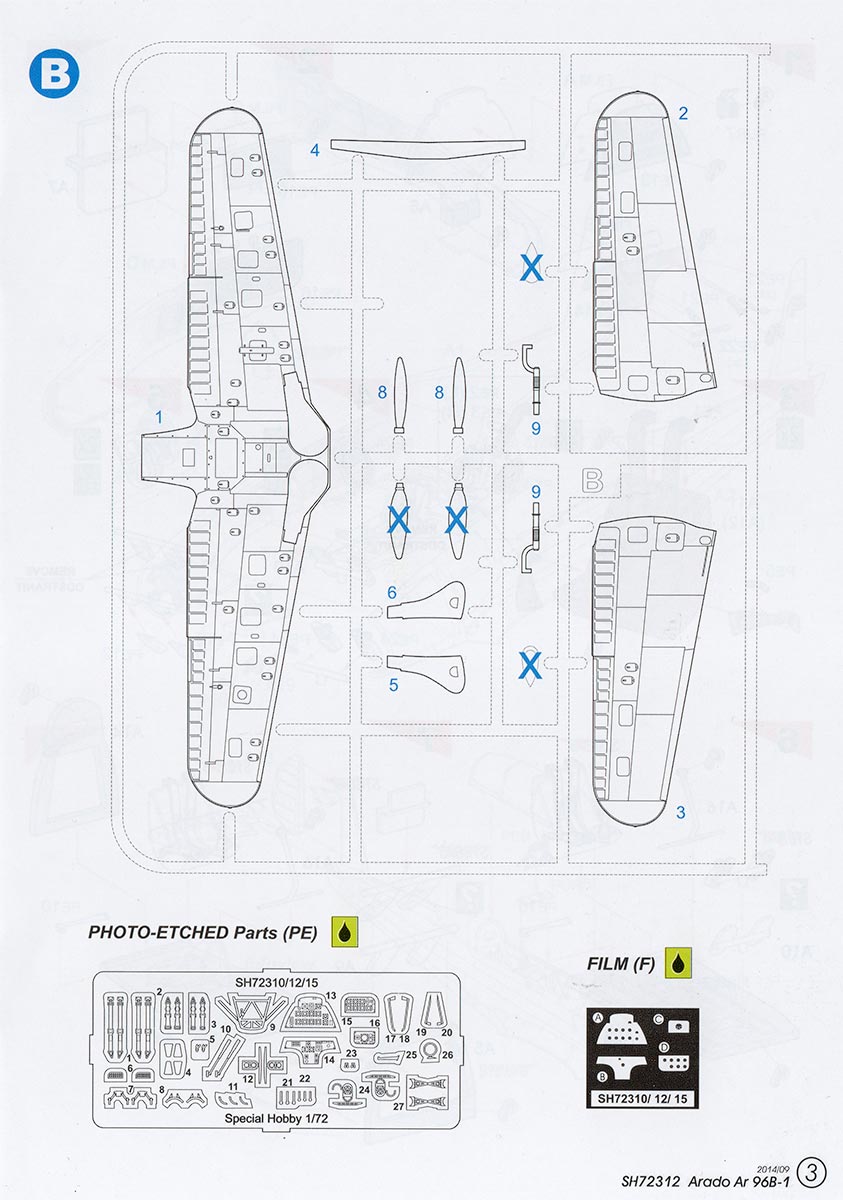 Относительно новый (2014) шорт-ран от чешской Special Hobby. Вообще в серии 3 модели (B1, B3 и Avia C.2), отличающиеся только коробкой, инструкцией и декалями. Литники достаточно аккуратные, есть небольшой облой, но не критично, мелочёвка тоже более менее, тем более, что большая часть мелких детаталей дана в смоле и травлении, Часть деталей, в том числе и смолы, не используется.