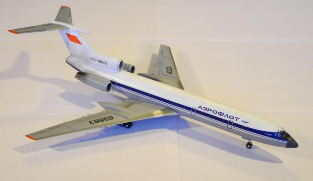Давно разглядываю тут модели , и вот, решился выложить свое. Ту-154М от "Звезды" полностью из коробки, покрашена Mr.Color, шпатлевка не использовалвсь