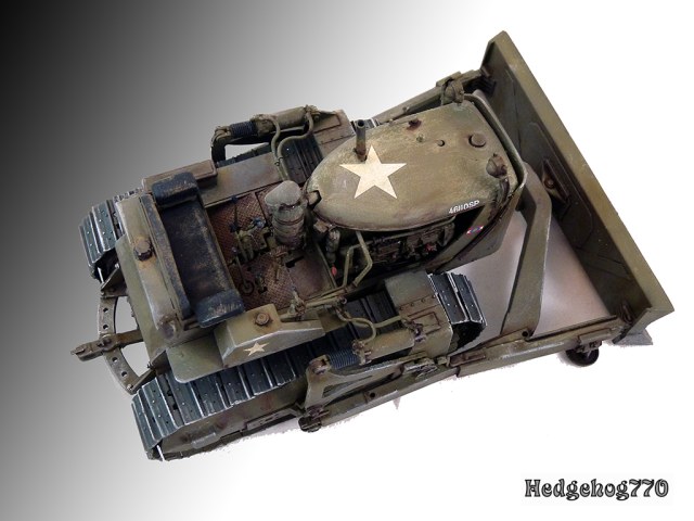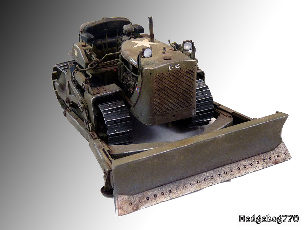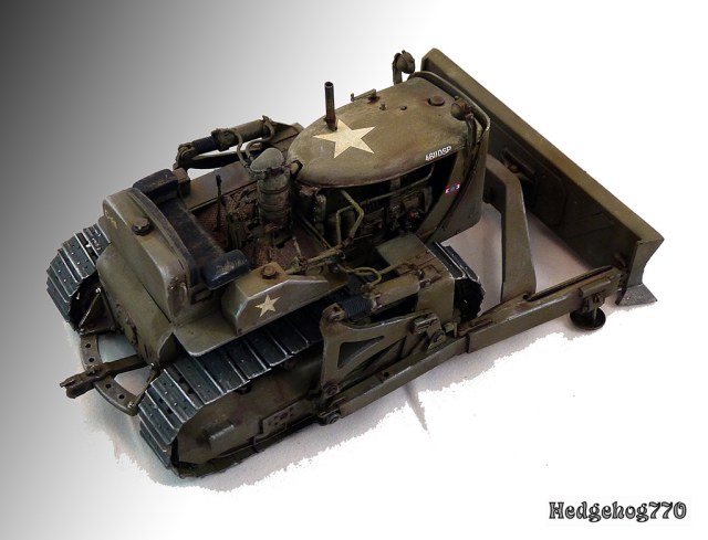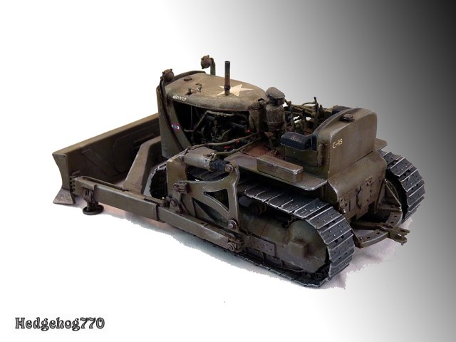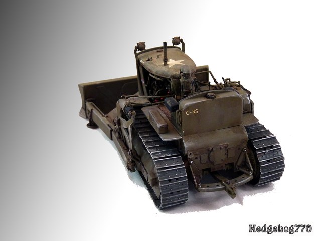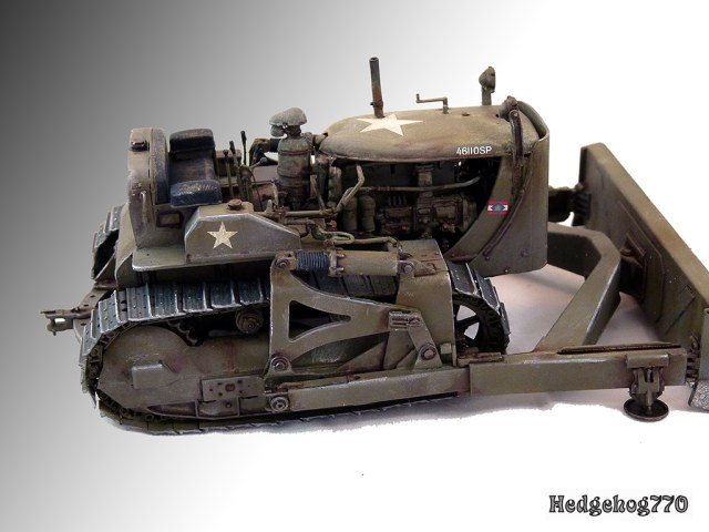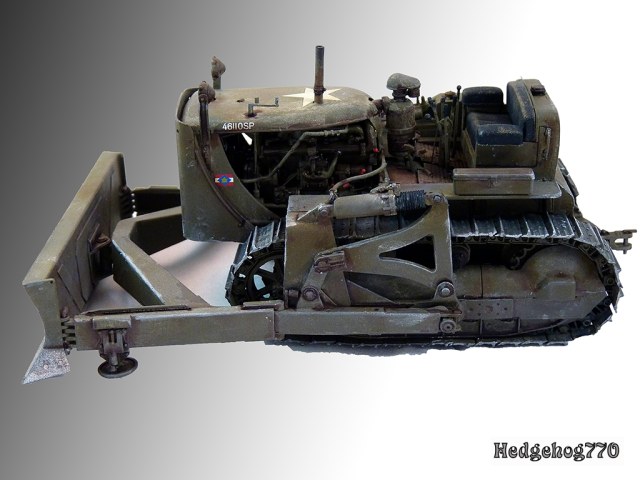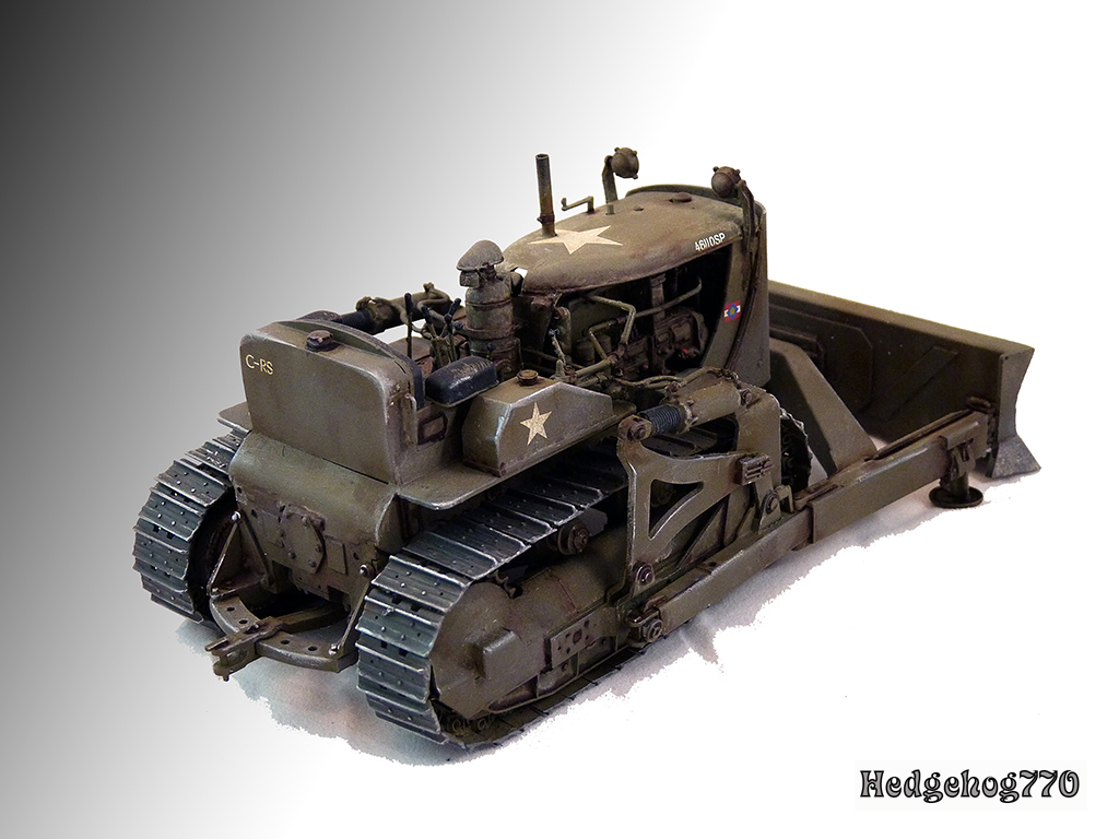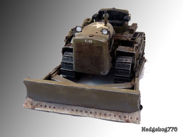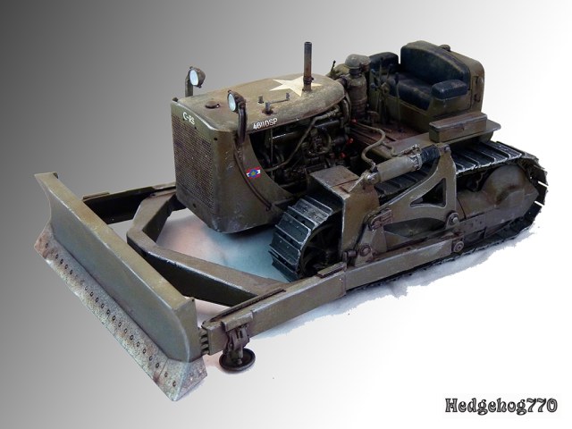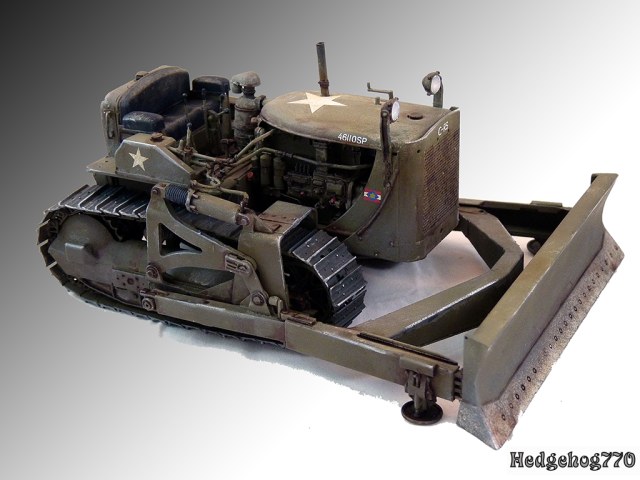 Доброго времени суток. Представляю USArmyBulldozer от MiniArt в масштабе 1/35. По всему видно, что это CaterpillarD7, но производитель нигде на коробке это не указал. Модель делалась для диорамы.