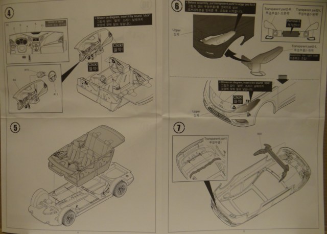 3. Салон автомобиля выглядит уже лучше. Передняя консоль выполнена качественно, ручки в обшивки дверей вклеиваются отдельно, только почему-то они уже в цвете хром... ну да ладно, перекрасим если что. Так же для оформления салона идут декали и наклейки, что придаст салону этого авто красотульку.