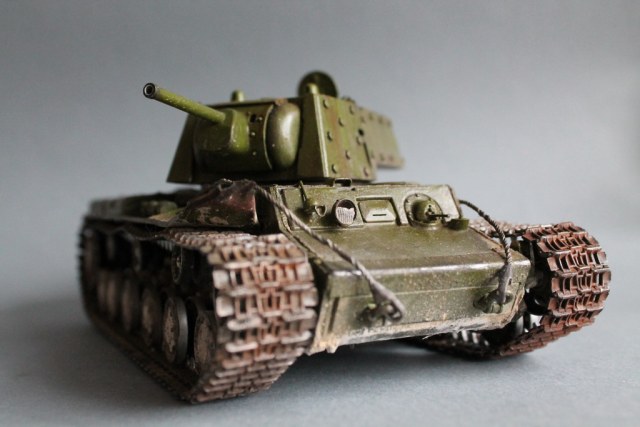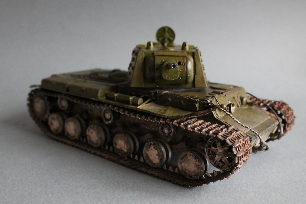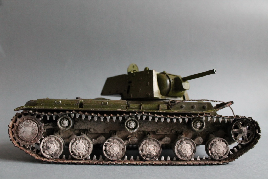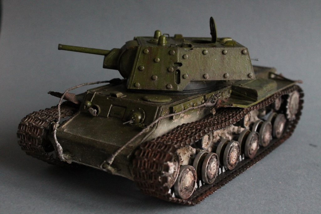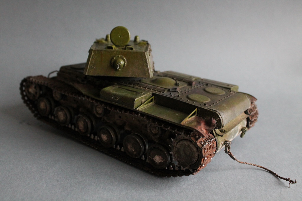 Добрый день друзья! хочу представить на ваш суд модель Кв 1. Это моя первая модель БТТ, поэтому прошу отнестись снисходительно. Собиралось все из коробки, от себя тросы из проволоки, надгусеничные полки из пивжести и сварные швы из двухкомпонентной шпаклевки. Окрашивалось все кистью. Основная окраска-темпера, подтеки-масло, грязь, пыль-пастель. Приятного просмотра!