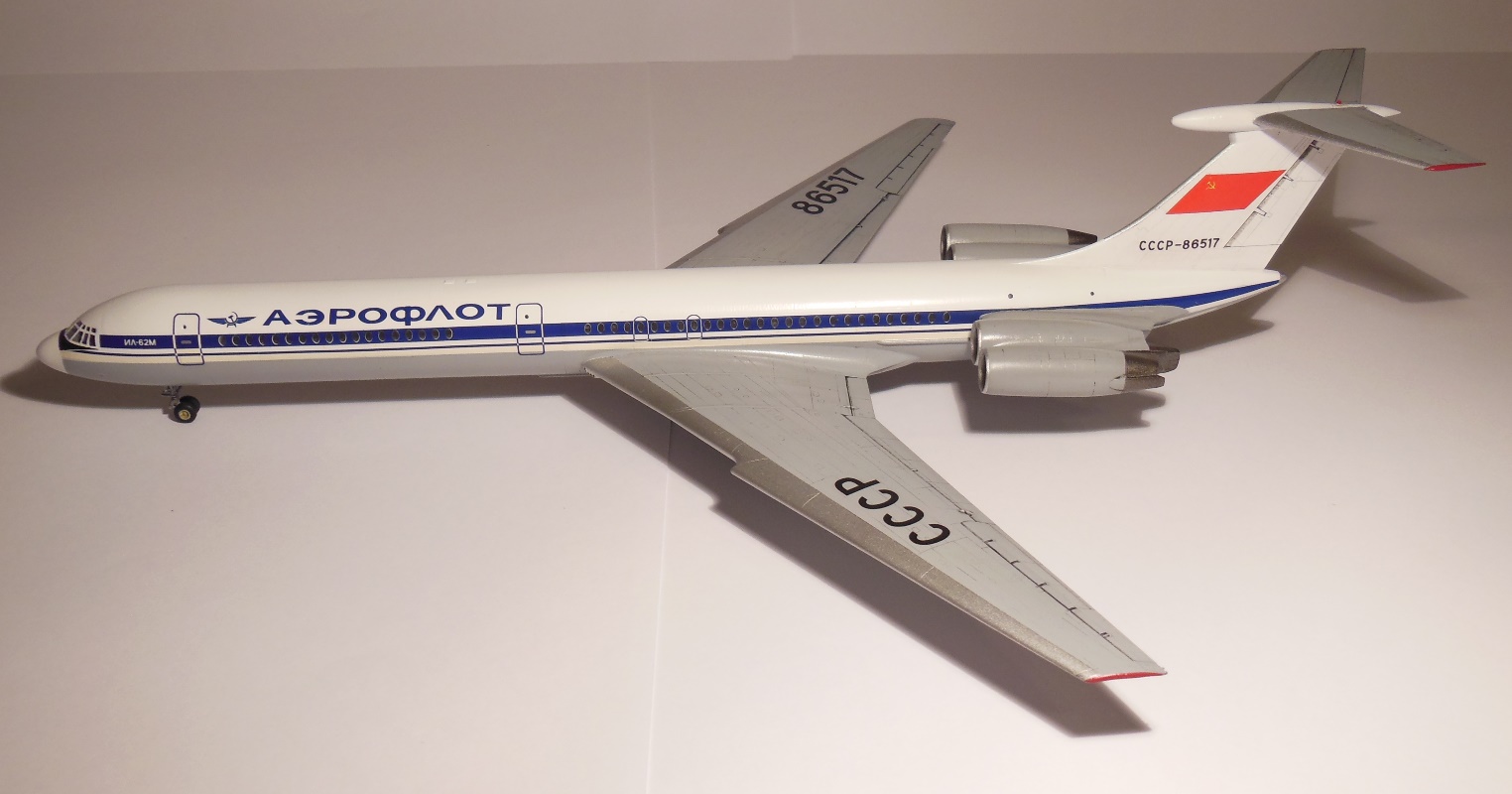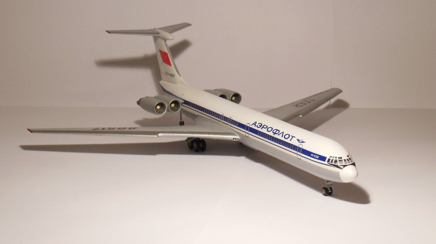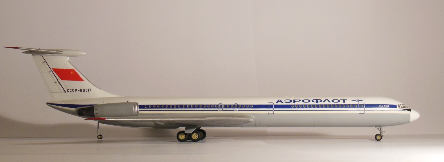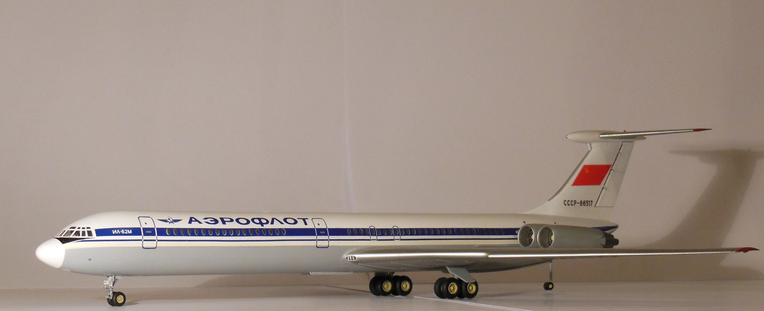 Представляю на Ваш суд ещё одну свою модель гражданской авиации. На этот раз Ил-62. Буквально в середине августа приобрел я эту модель и мог бы завершить её ещё в середине сентября, если бы не учеба, на которую сейчас надо уделять как можно больше времени и внимания!