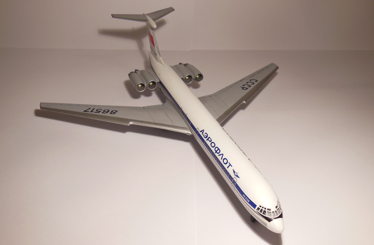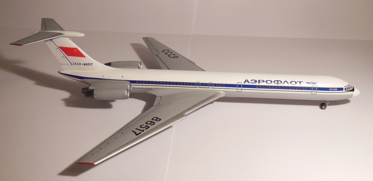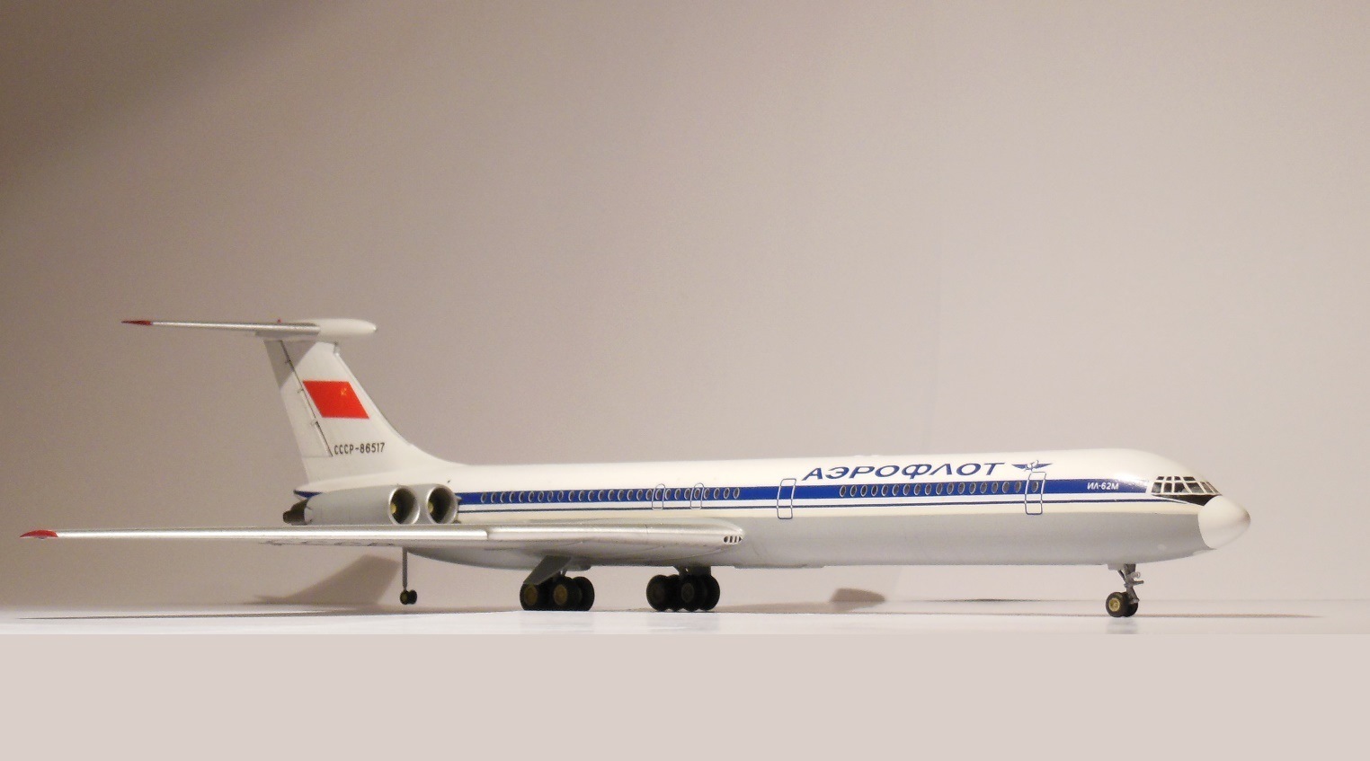 Представляю на Ваш суд ещё одну свою модель гражданской авиации. На этот раз Ил-62. Буквально в середине августа приобрел я эту модель и мог бы завершить её ещё в середине сентября, если бы не учеба, на которую сейчас надо уделять как можно больше времени и внимания!