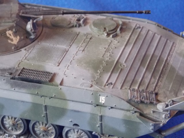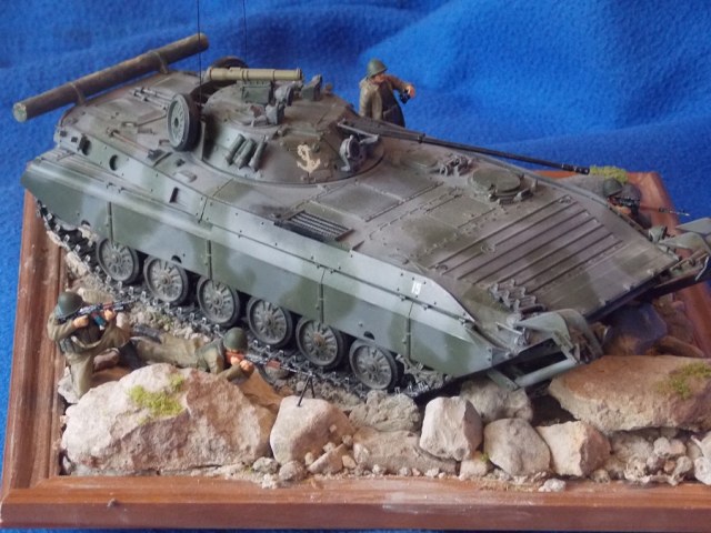 От себя хочу добавить, что ПТУР решил не убирать с башни из эстетических соображений, с ним БМП живее смотрится, на мой взгляд. Да , у душманов было не очень много танков, смысла в ПТУРе не имелось никакого. По моей версии, в таком виде БМП пришла с завода, а снять установку с крыши просто не успели.