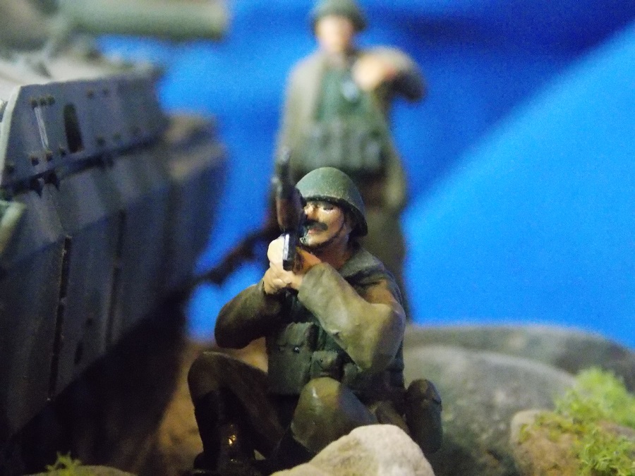 Окраска - грунтовка, краски, лак – тамия. В некоторых местах (зеленые пятна на бмп, часть амуниции солдат) – краски звезда.