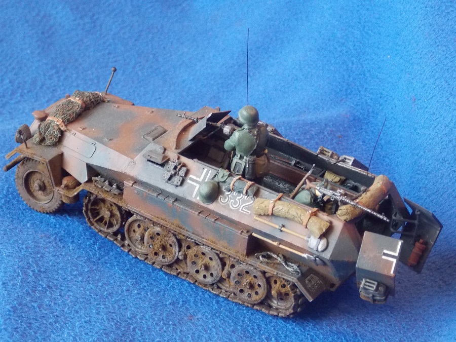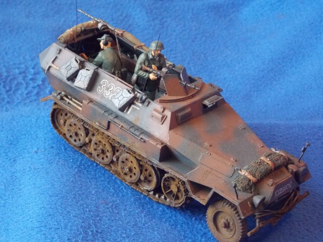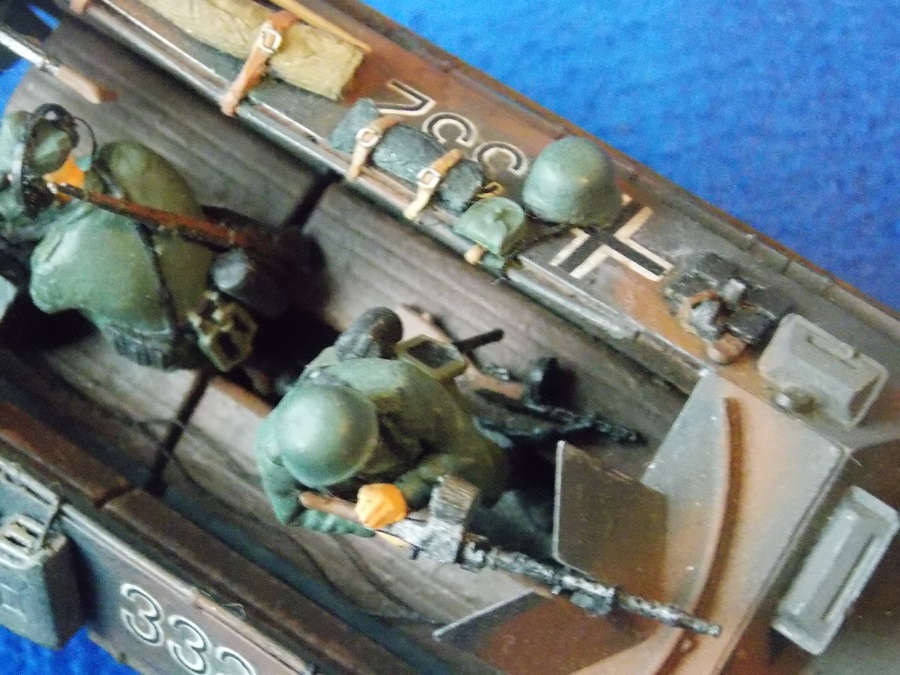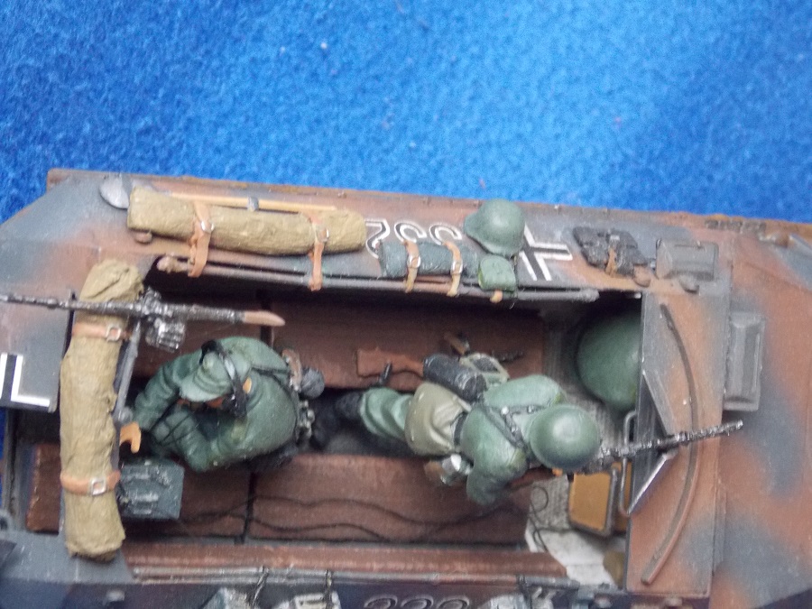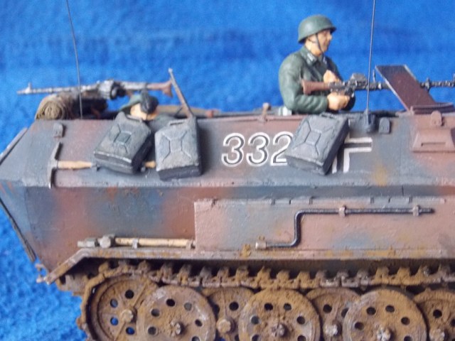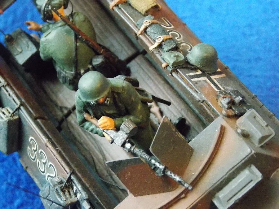 Форма экипажа взята в соответствии с предложенным вариантом от звезды, глубже в историю не копал. Камо бронетранспортера взято стандартным для начала войны: по основному сероватому цвету панцерваффе – коричневые разводы.