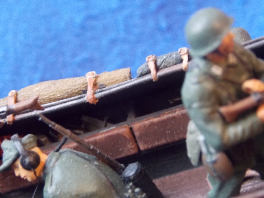 Окраска - грунтовка, краски, лак, смывка – тамия. Шпатлевка – тамия, грязь – МИГ. В некоторых местах (ржавчина , часть амуниции солдат) – краски звезда.