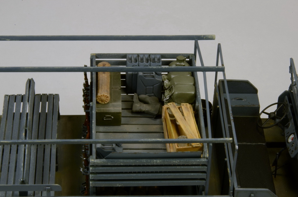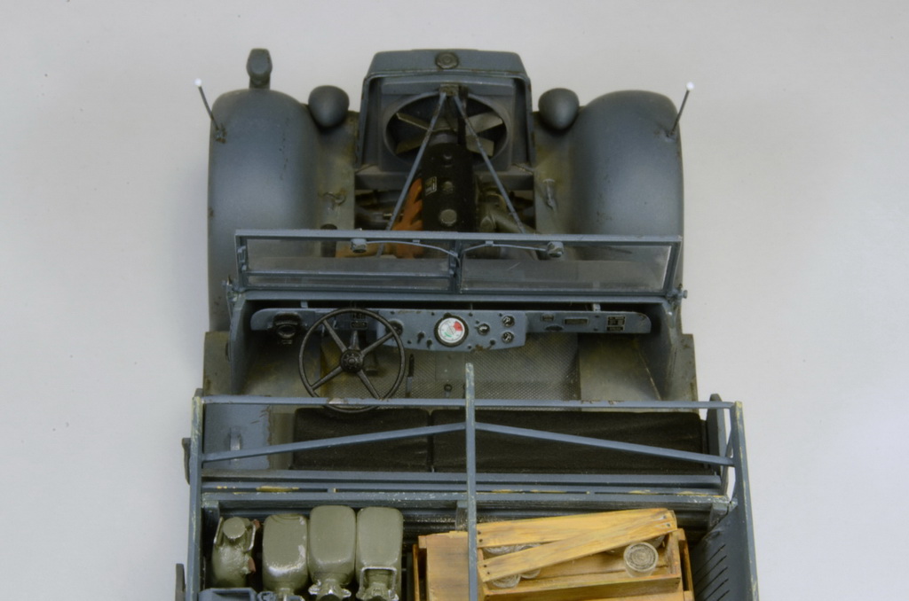 Сборка затянулась почти на 2 года (такие у меня быстрые темпы сборки )Добавил колеса от panzer art,фары эльф, фототравление voyager, канистры asuka model,ящики plus model,ведро rb model,сухие декали archer, все что вспомнил. Сделал самодельную лавку, не видел на фотографиях лавки, что дает dragon,еще добавил проводку в двигатель и болты master club. Собираемость на 5, деталировки на уровне. В наборе мне попался только один брак, свернутая винтом рама ) думаю что это только мне попался такой брак ! Шпатлевки почти не использовал. Набор старый думаю многим знаком.