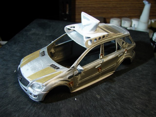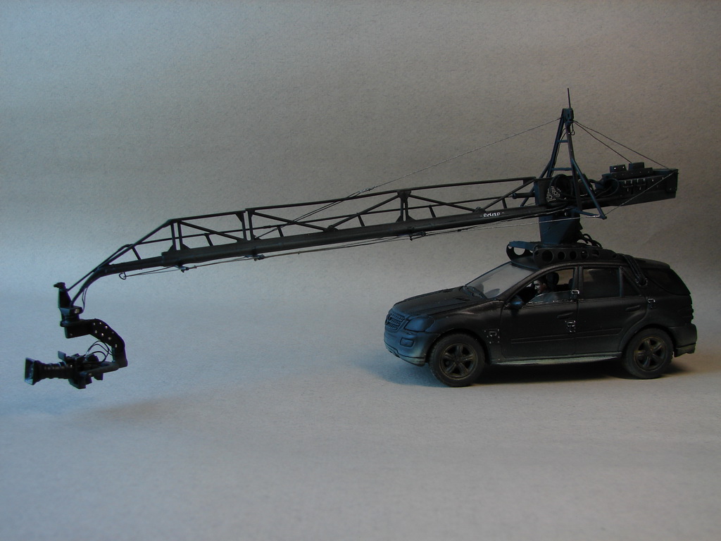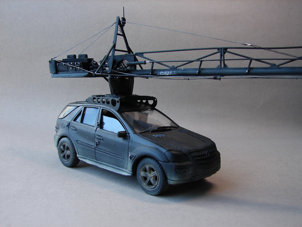 Помимо машин-"актеров"решил добавить на диораму и киношную тусовку.Первая машина,которую можно переконверсировать из чего то доступного-Мерседес МЛ с системой Эдж.Хитроумная система гиростабилизации камеры,была придумана в России ,дорабатывалась в Украине...и теперь успешно используется в Голливуде.Здесь можно почитать http://www.popmech.ru/made-in-russia/5301-russkaya-ruka-v-gollivude-kak-my-kaliforniyskuyu-blokhu-podkovali/#fullКонкретно на съемках Мэд Макса,участвовало две машины-это Мерседес и Тойота Тундра.Модели Тундры в приближенном к 1:35 масштабе ,даже не стоит искать,а вот Мерс МЛ имеется в качестве игрушки у Кинсмарта.Немного не совсем аутентичная к прототипу модель(хотя и такая тоже встречается),но с пивом пойдет.))Машинка ближе к 36 масштабу,но так как она у меня будет почти на заднем фоне-пойдет.