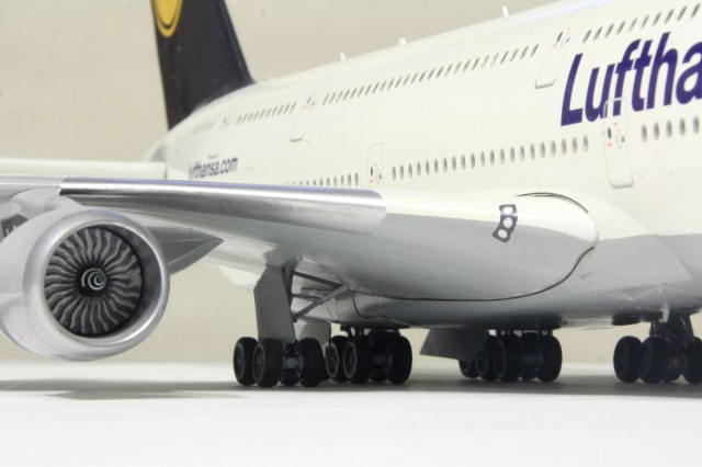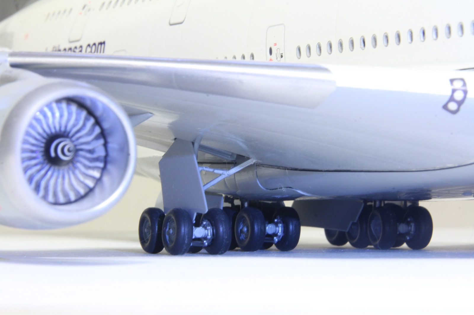 Колеса под его весом гнутся. Иллюминаторы - декаль. Створки, я так понял зарываются, с выпущенными шасси, как передняя стойка у А320. Те сами створки закрыты, а шасси через небольшое отверстие торчат. Может когда-нибудь настроение будет, так переделаю.