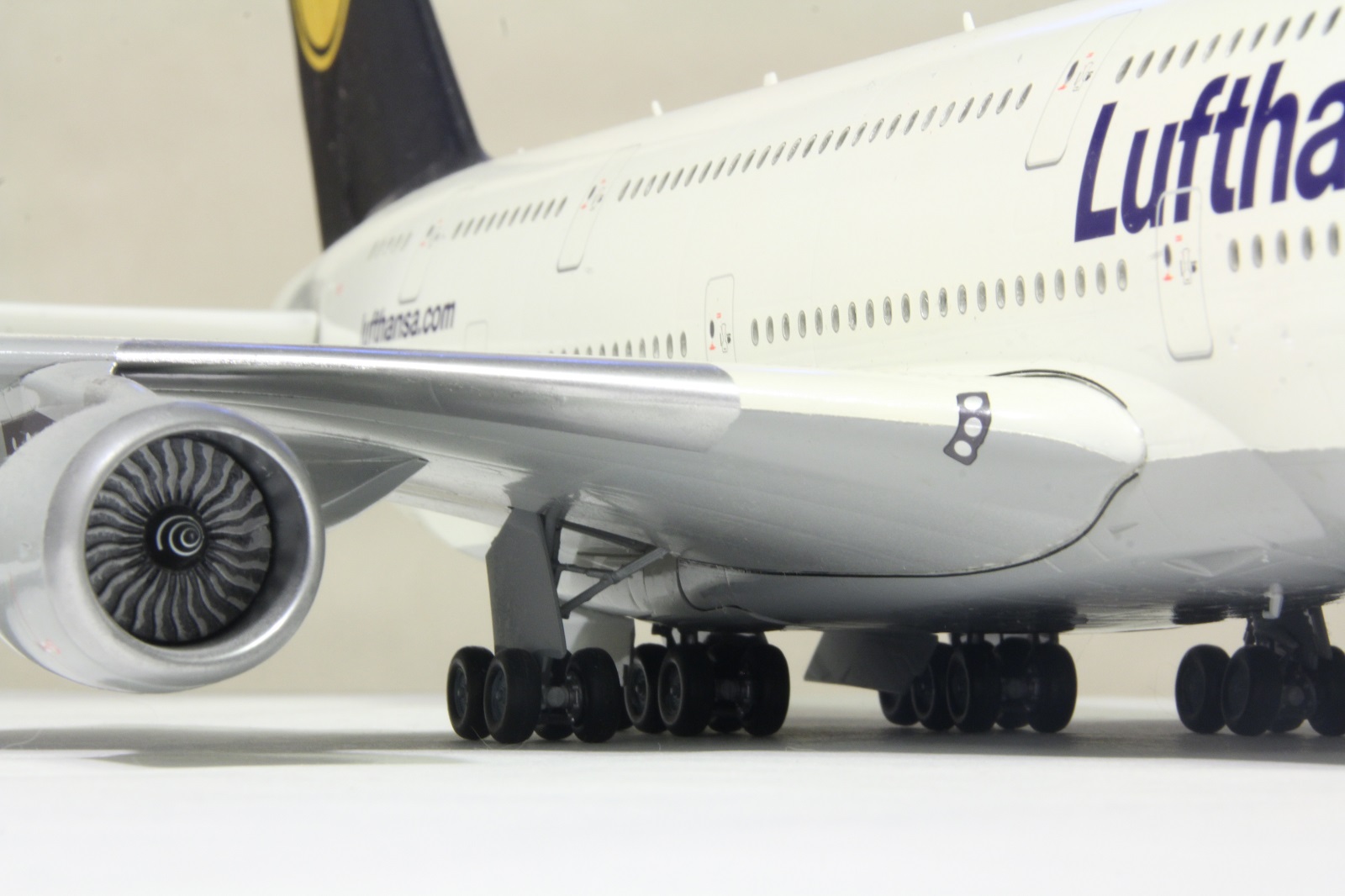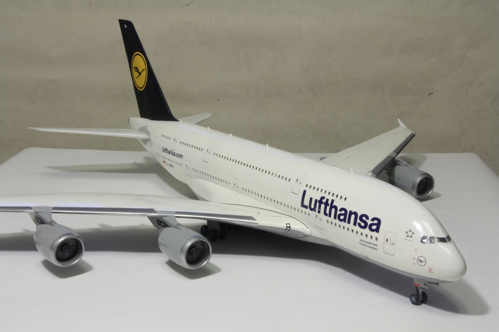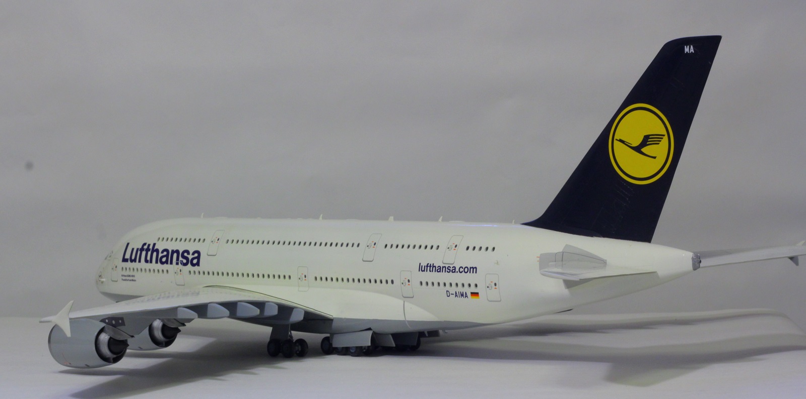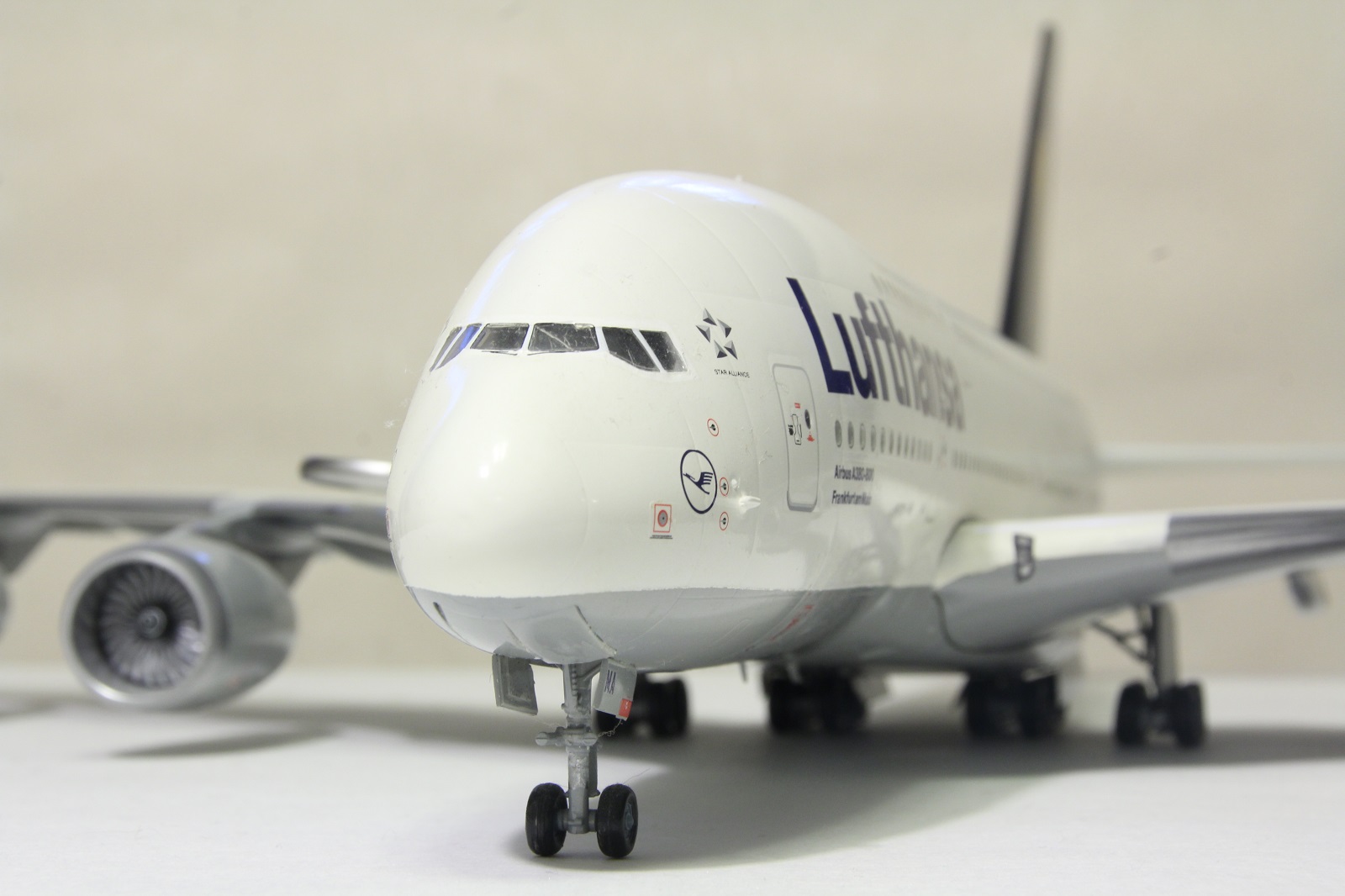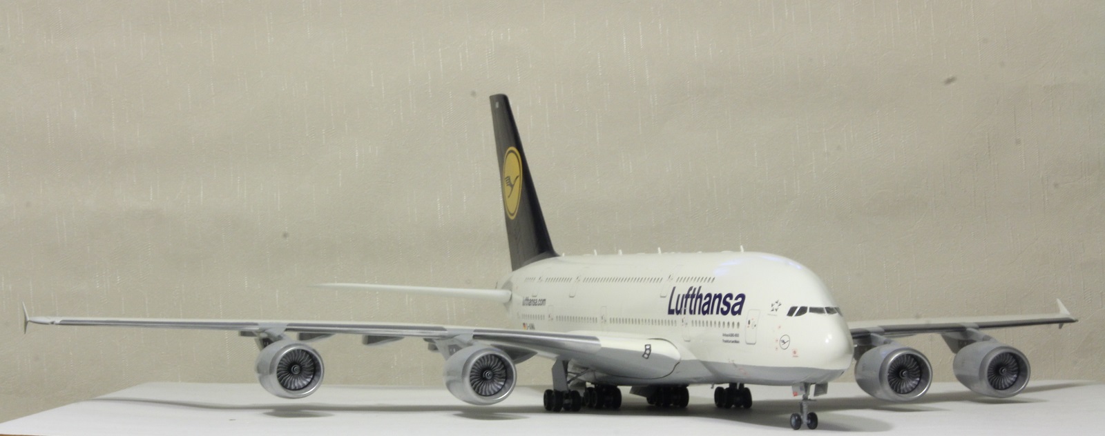 Наткнулся я сегодня на шкафу на этого гиганта. Собрал я его пару лет назад. Про косяки принципе знаю. Набор неплохой. Кое-где потребовалось немного шпаклевки. Красил баллонами. Единственное не понравилась стыковка фюзеляжа и крыльев. Толи дело на А350. Собрал без дороботок. Ошибся со створками центральных шасси. Инструкция как-то вскользь обходит момент их установки, а по фотографиям почему не посмотрел уже не помню.Победить этот набор не удалось, косяков много.