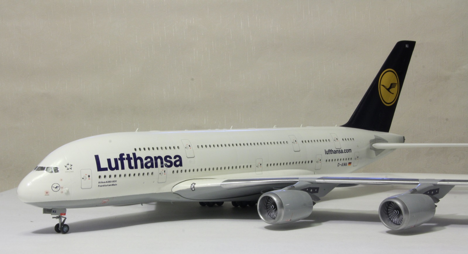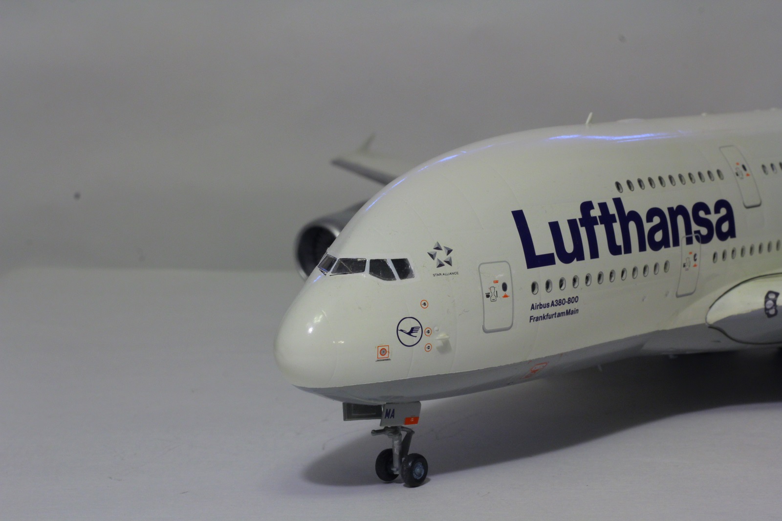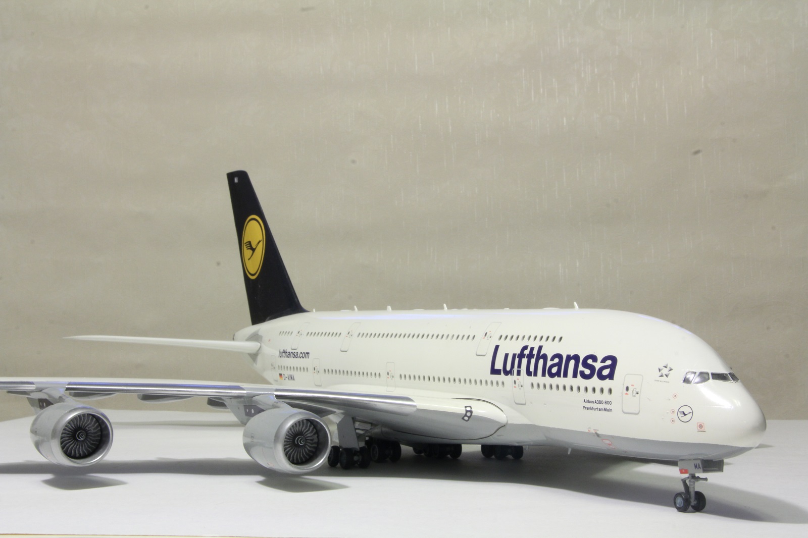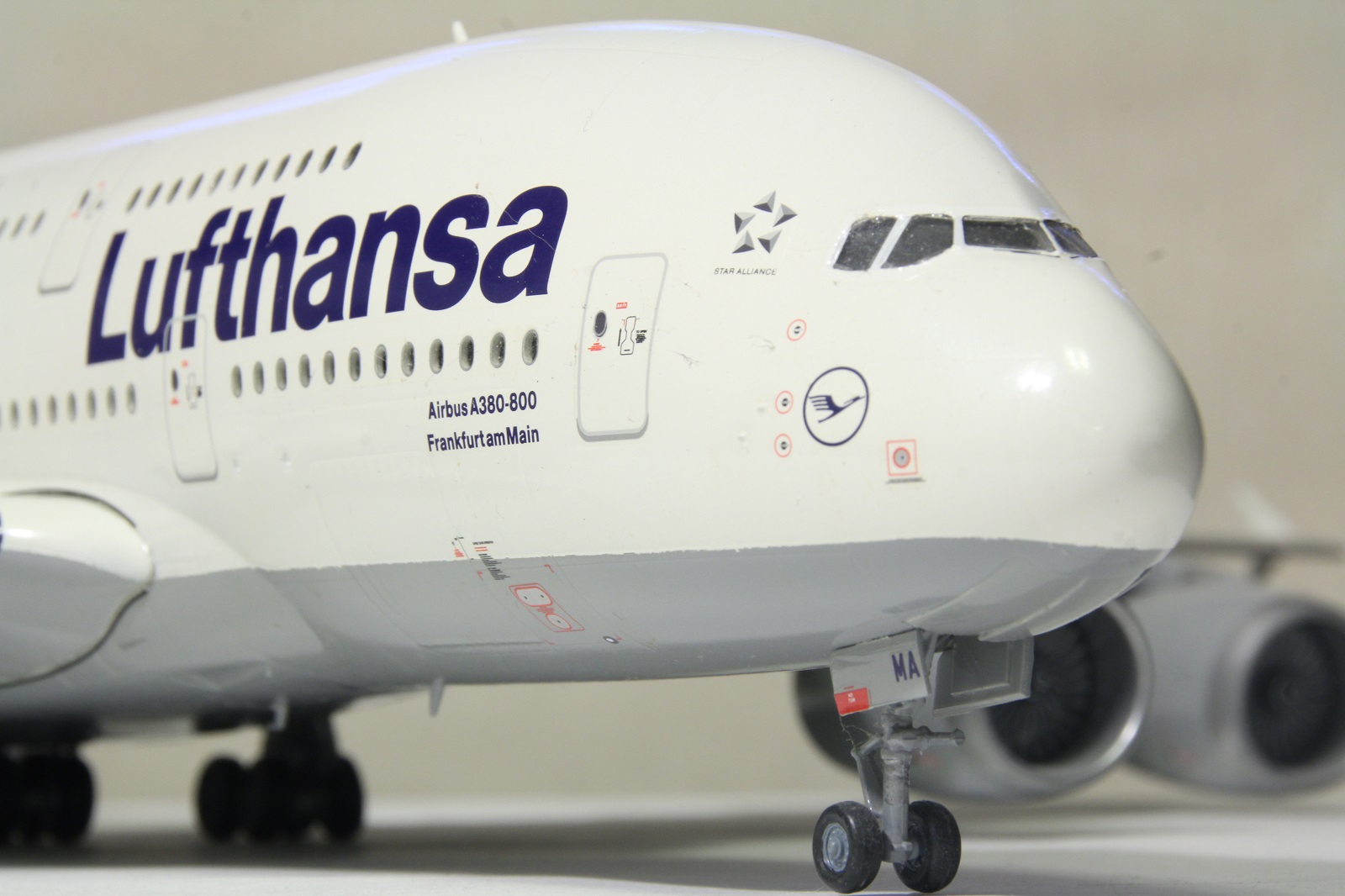 Наткнулся я сегодня на шкафу на этого гиганта. Собрал я его пару лет назад. Про косяки принципе знаю. Набор неплохой. Кое-где потребовалось немного шпаклевки. Красил баллонами. Единственное не понравилась стыковка фюзеляжа и крыльев. Толи дело на А350. Собрал без дороботок. Ошибся со створками центральных шасси. Инструкция как-то вскользь обходит момент их установки, а по фотографиям почему не посмотрел уже не помню.Победить этот набор не удалось, косяков много.