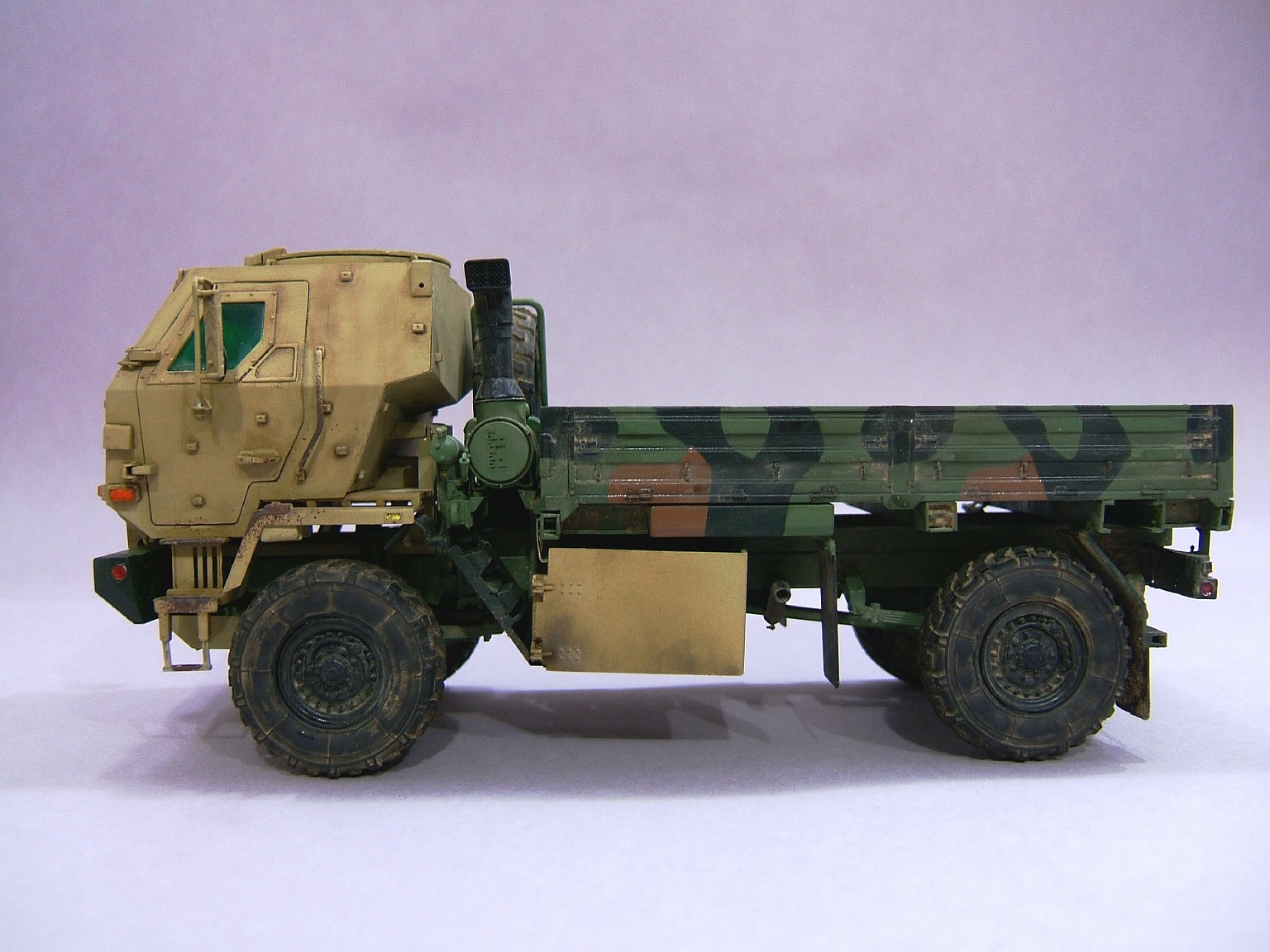 Как современщик, не могу пройти мимо. Модель понравилась, интересен контраст песочной кабины и натокамуфляжного кузова. Алексей, а в наборе есть детали интерьера? За такими стеклами ничего не видно, это минус. Возможно, еще можно исправить, взять прозрачный пластик и вырезать заново, раз испортили (сам терпеть не могу исправлять косяки и два раза делать одну работу) И я бы сделал фильтр по кузову чтобы пригасить цвета.