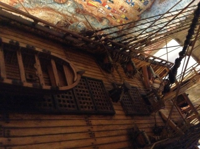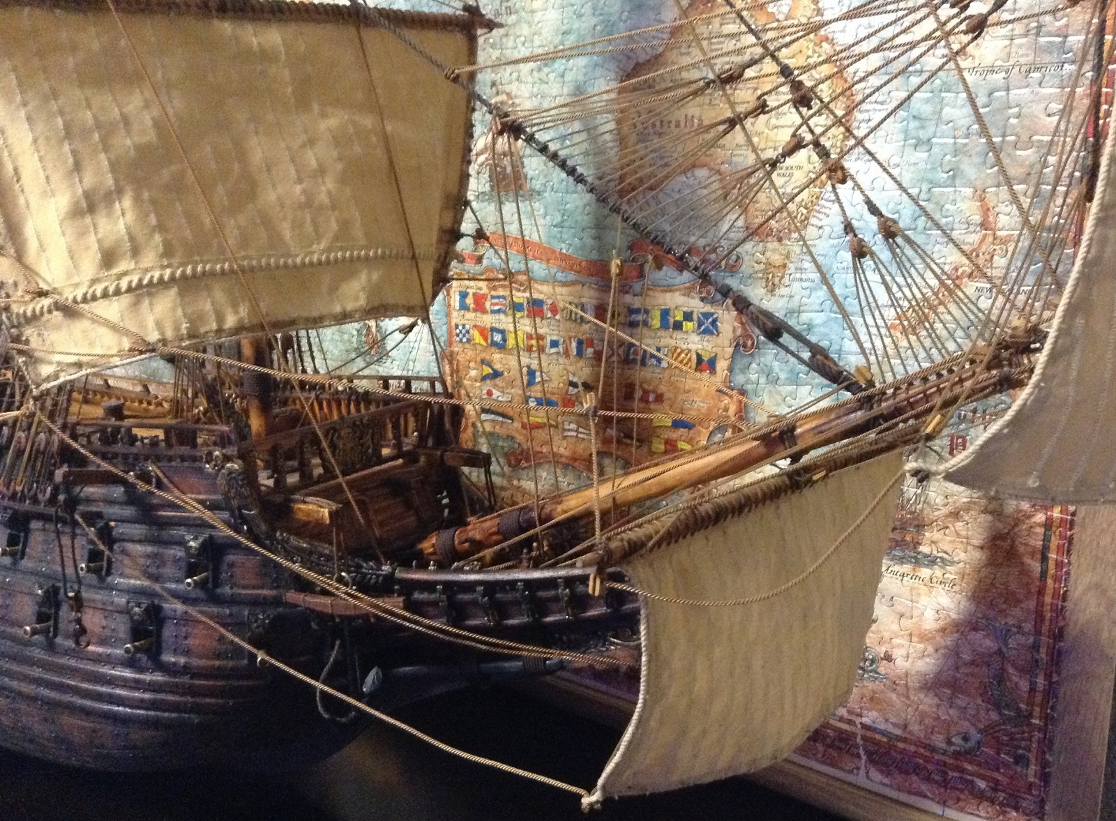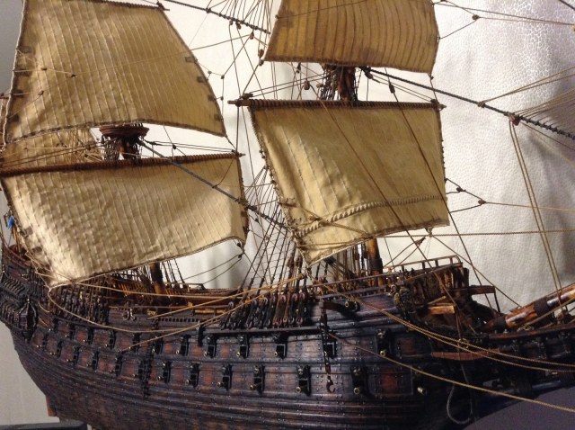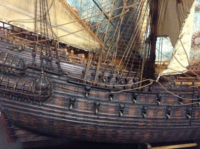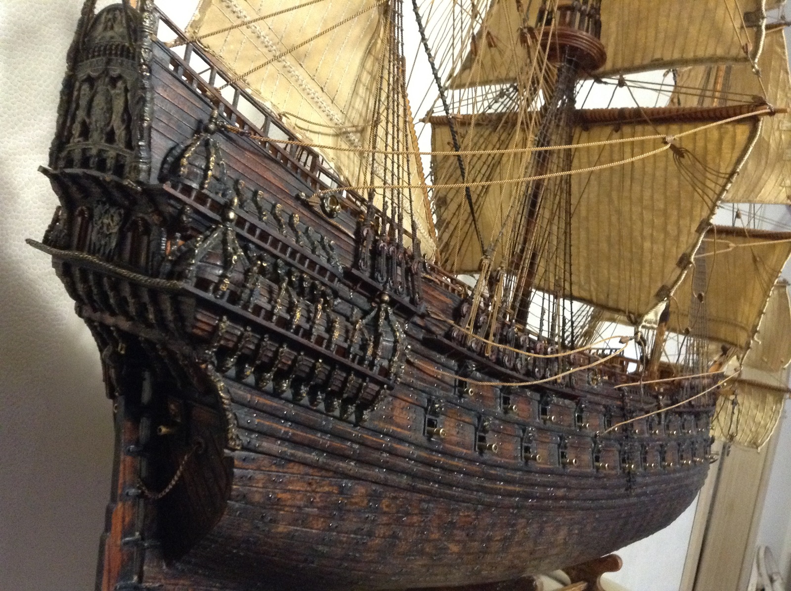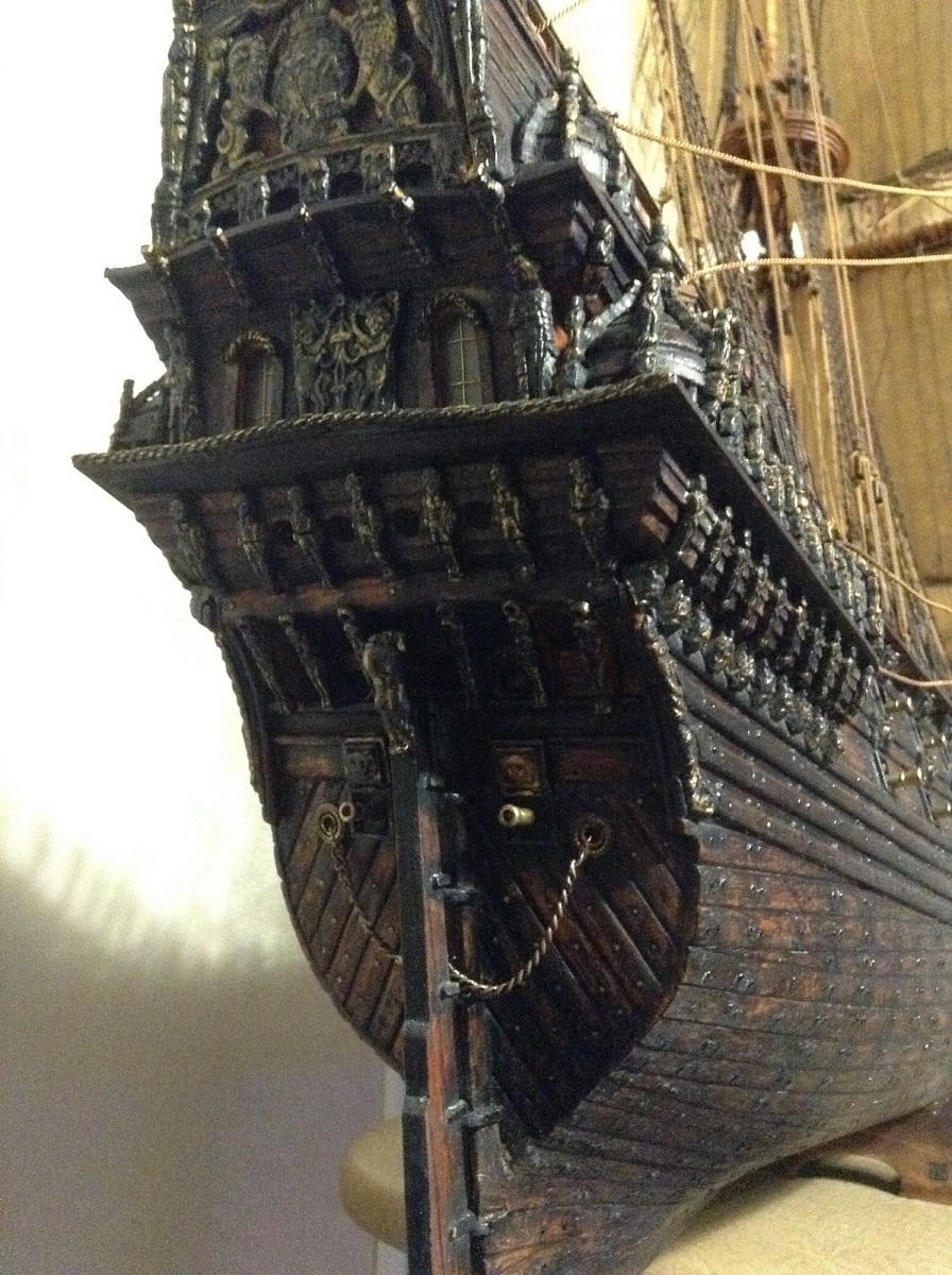 По цвету сейчас один в один с тем, что в Стокгольме в музее. 333 года под водой)). Осталось борта корщеткой "покоцать", позолоту на фигурах скрыть, обрезать рангоут по марсели и часть досок осветлить под новодел. И будет не отличить, хоть диораму музейную делай)