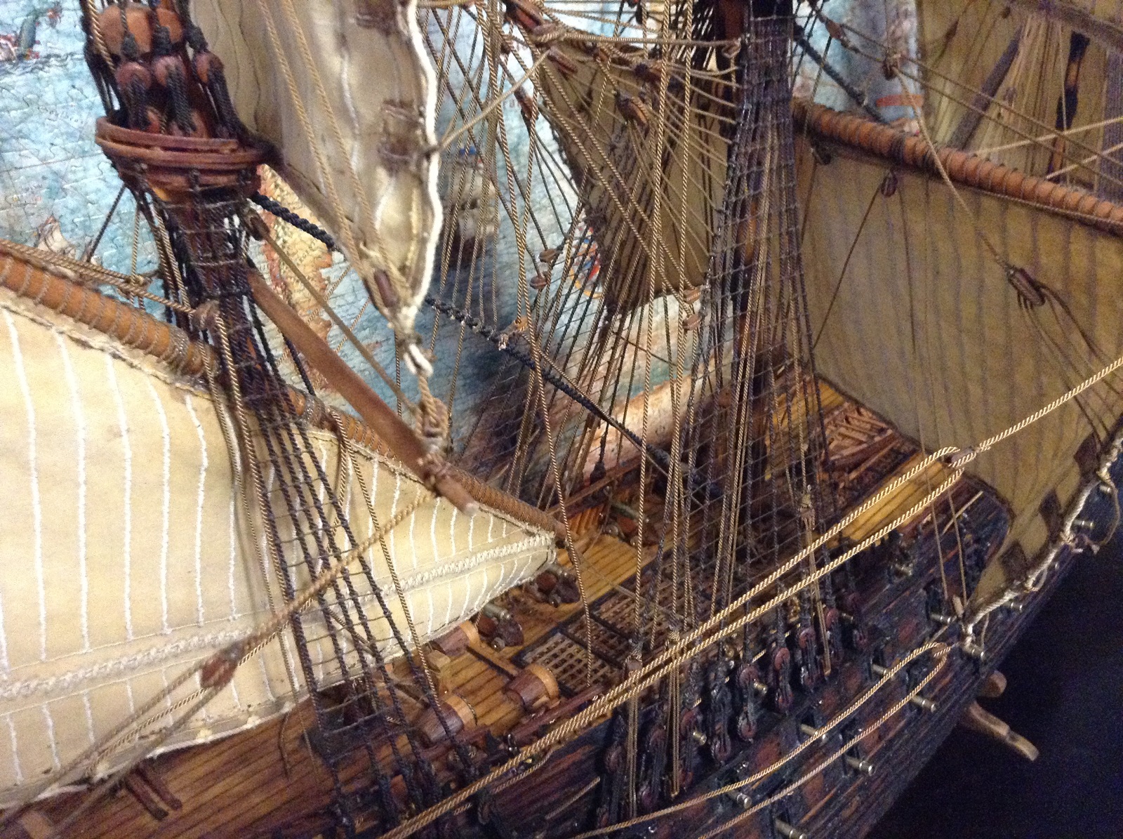Очень красиво. Такелаж и стоячий, и бегучий, его разводка, выше всяких похвал.