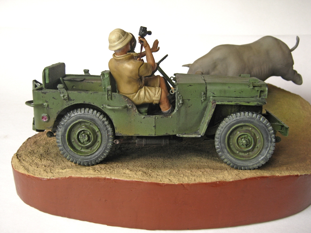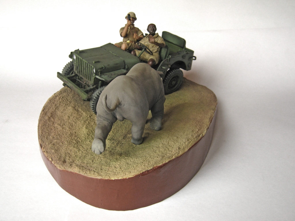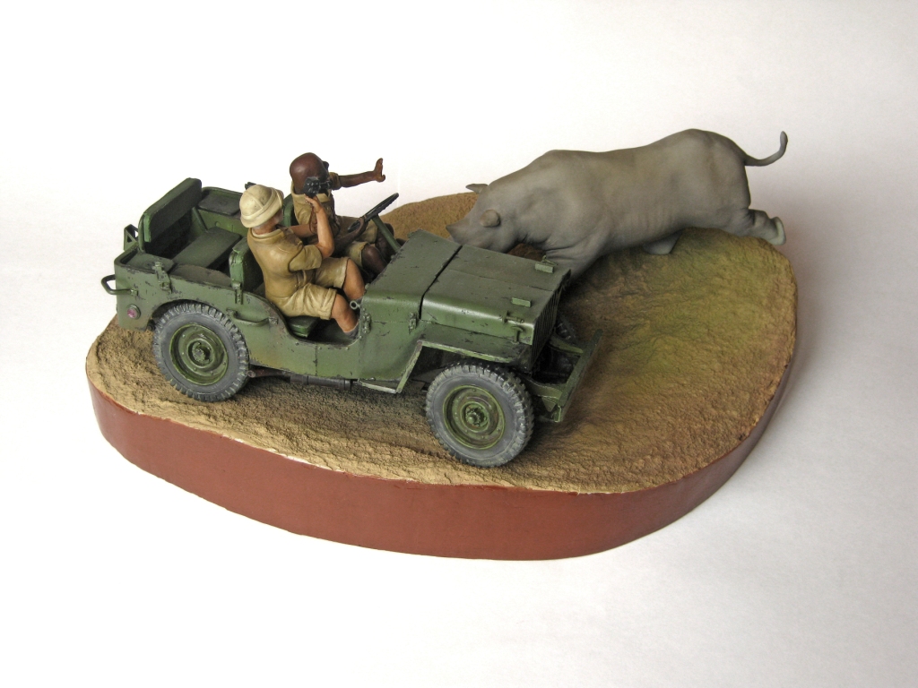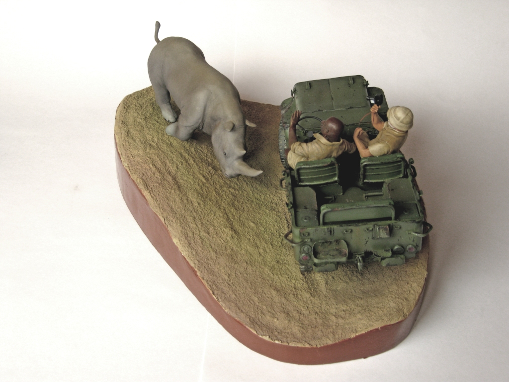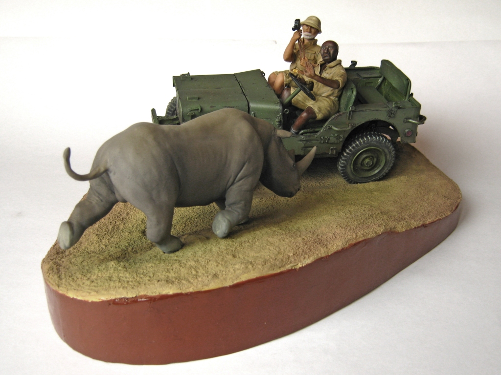 Обалденно! Объем работы впечатляет! Повидавший виды джип- ПОЛУЧИЛСЯ! Класс! Сюжет-мощь! Носорог классно получился- хотел бы я так ваять)))))))!!!!! Только маленький он- 2-2,5 метров в холке должен быть.