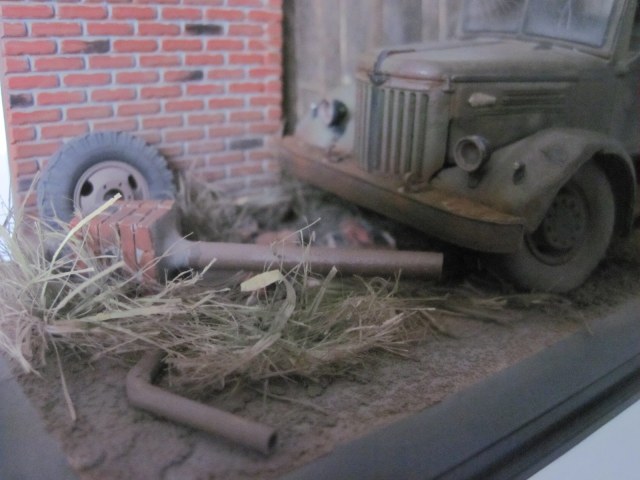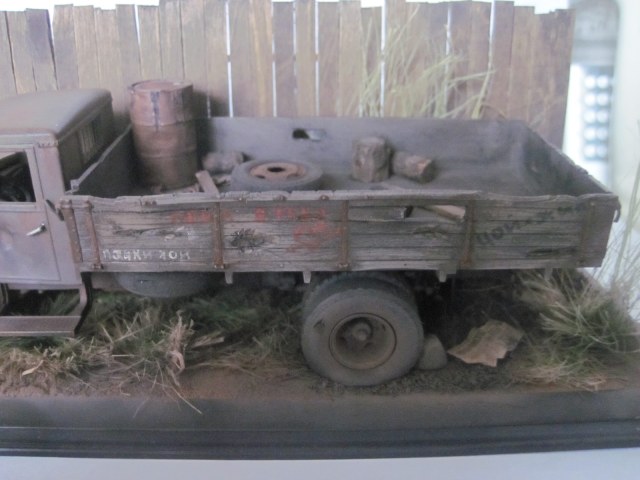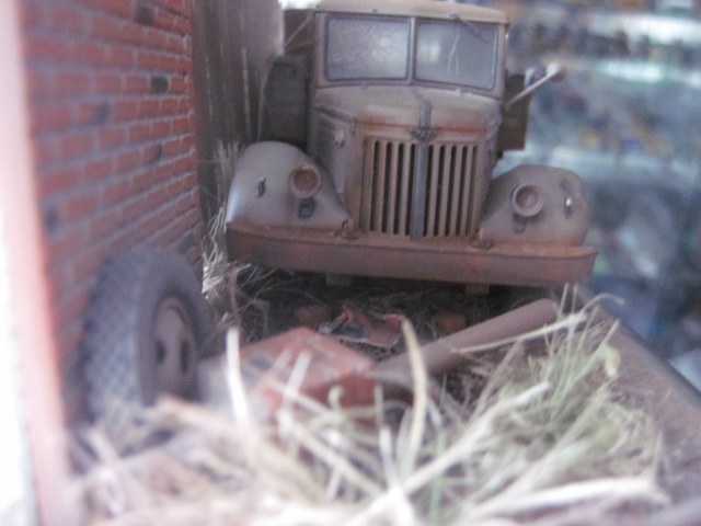 Авто виньетка, посвещенная брошенному умирать под забором, заслуженному трудяге! Набор для сборки от ССМ, краски и смывки, матовый лак Тамия. Пигменты Зип макет, художественный фиксатив. Трава из пакли.