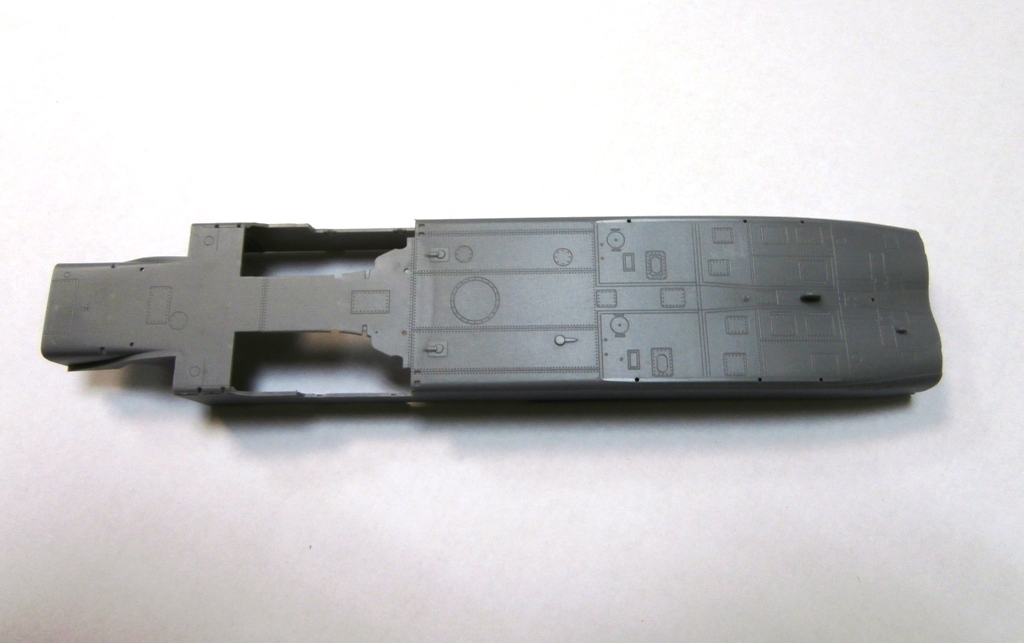Пластик серого цвета, гладкий и приятный на ощупь. Литье качественное. Облоя и утяжин я не обнаружил. Крой внутренний (на ПТБ – крой наружный), тонкий и аккуратный. Присутствует имитация винтов на панелях и лючках. Обилия «клепки» как на ВЭС-овской модели нет.