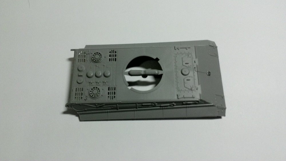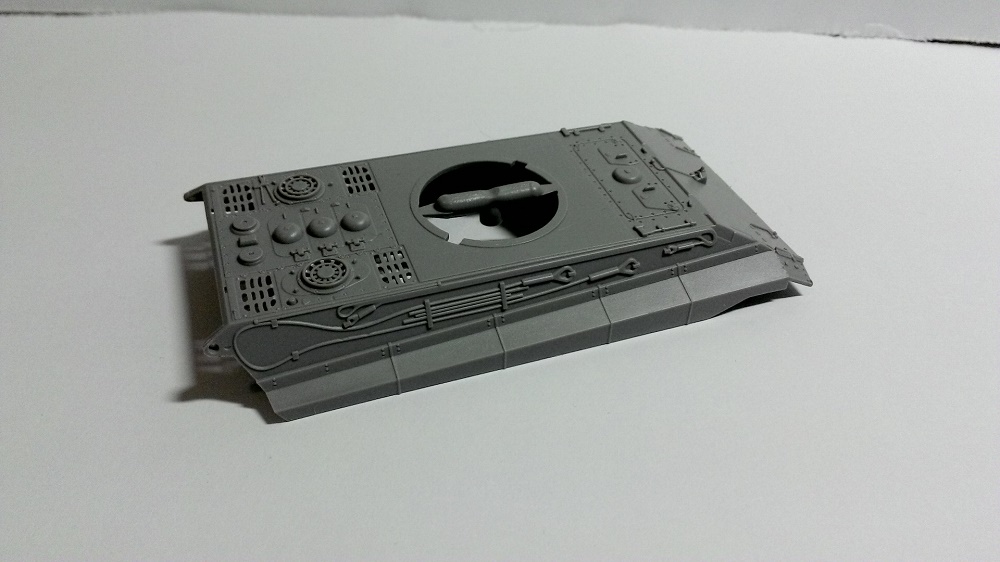 Крыша корпуса почти на 2мм шире чем надо. Башенный погон (а значит и вся башня) смещен на 1.1 мм. Шиповых соединений бортов и кормы (а так же бортов и ВЛД) нет.