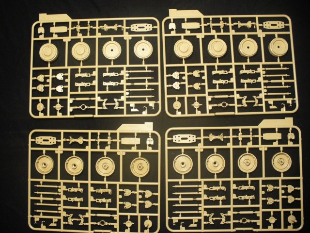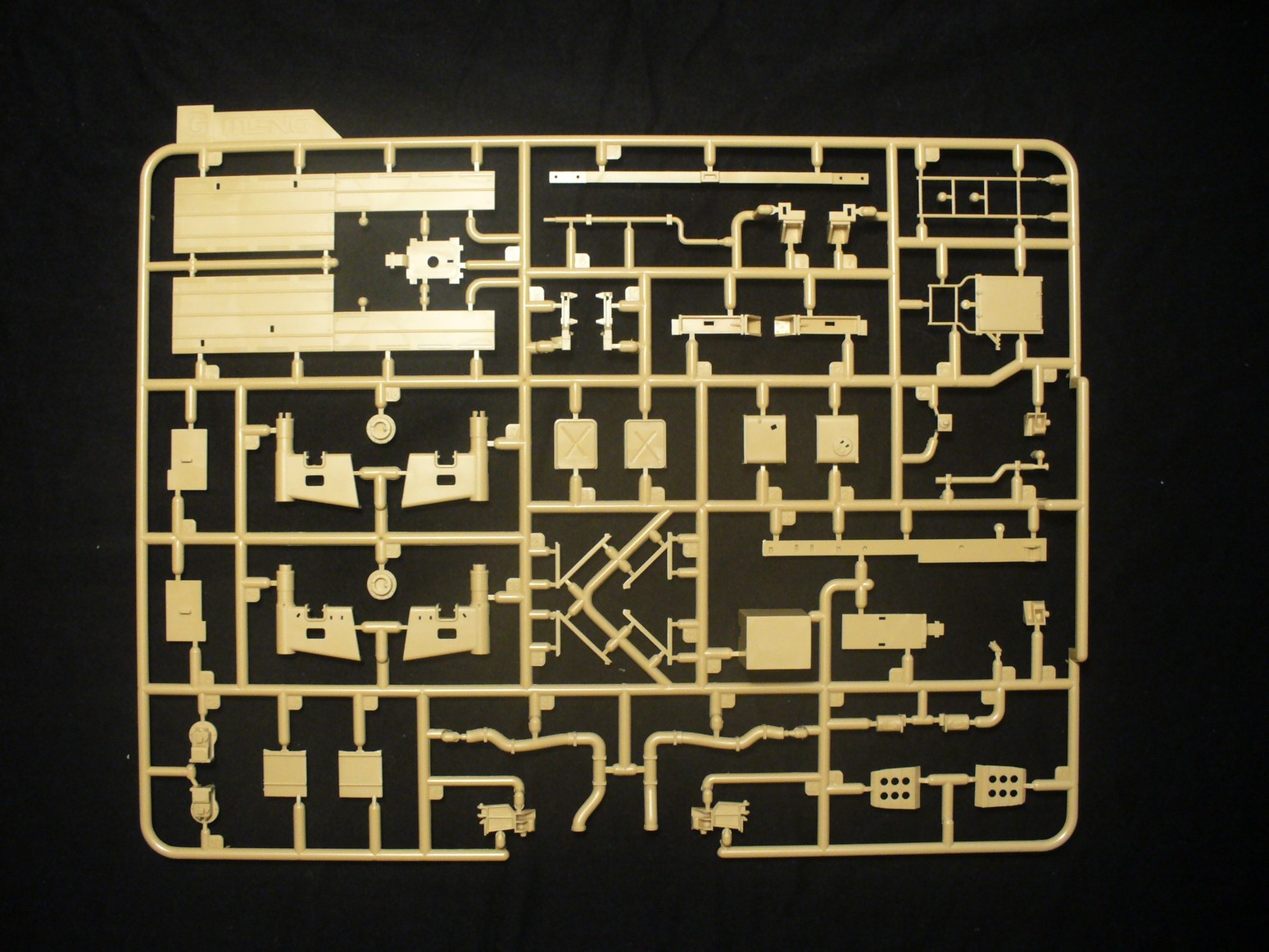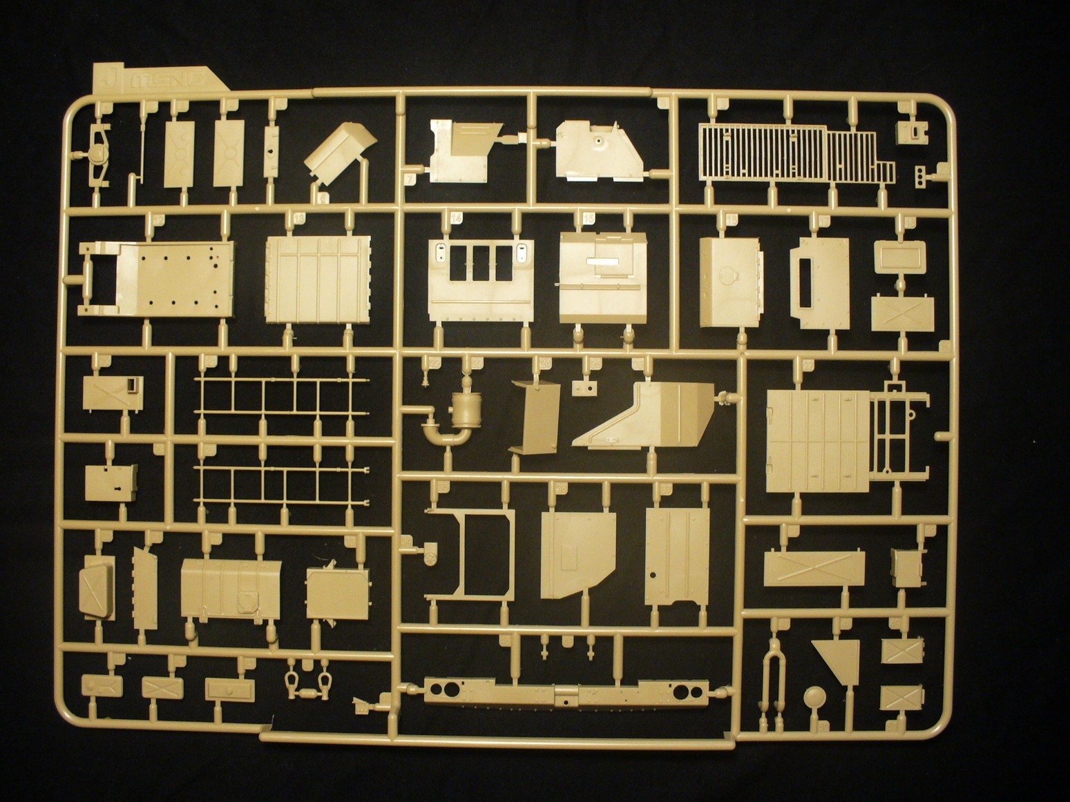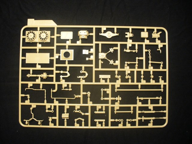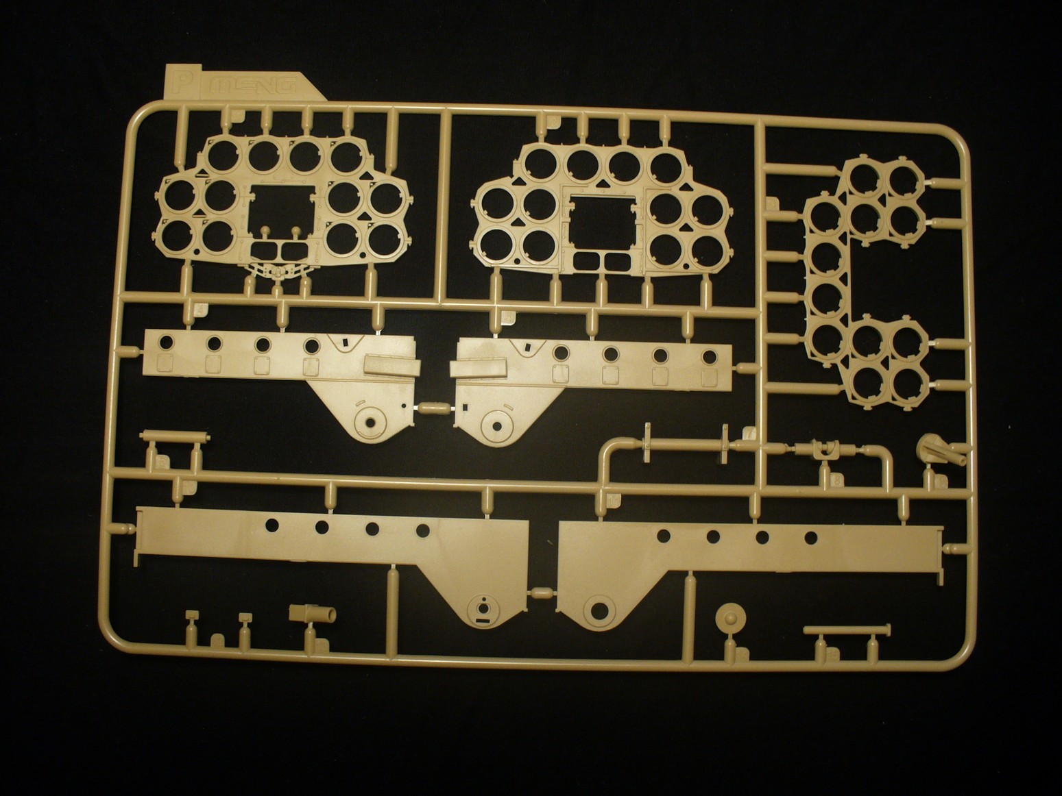 Модель производит приятное впечатление. по сравнению с моделью от трубачей более детализированный двигатель, гидротрансмиссия и раздаточная коробка. правильный угол переднего скоса рамы. Облоя нет. но много следов от толкателей (плюс видно на фотках как будто у толкателя работала только половинка хвостики торчат). насколько будут критичны будут следы, видно уже будет при сборке.