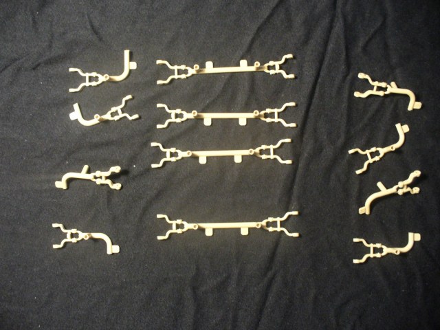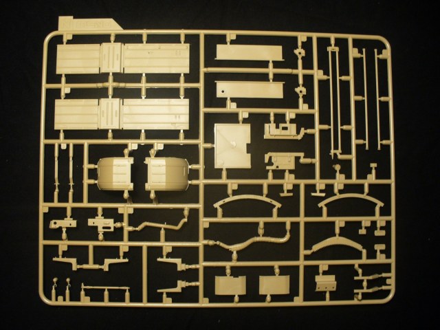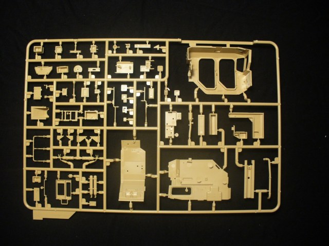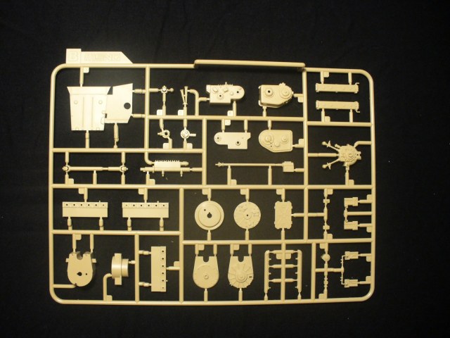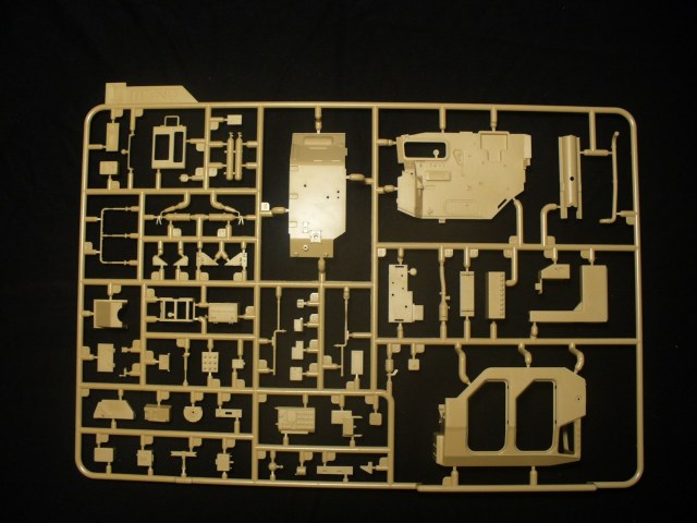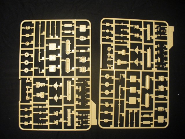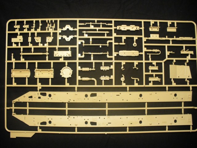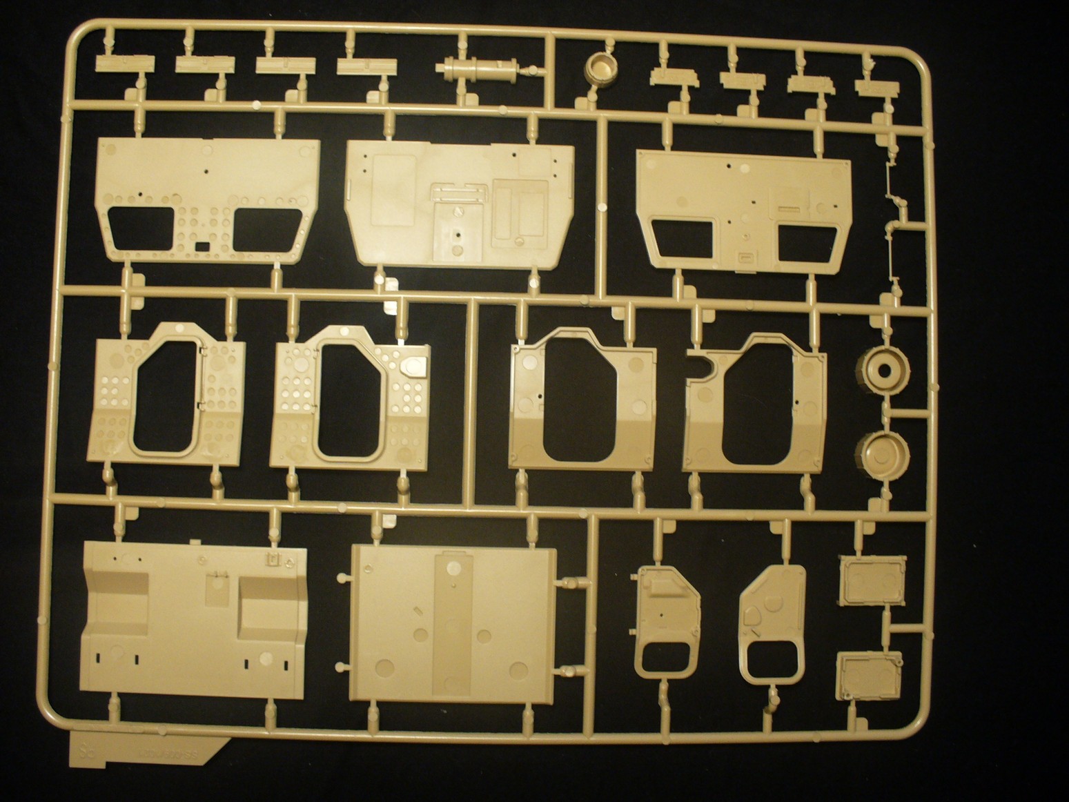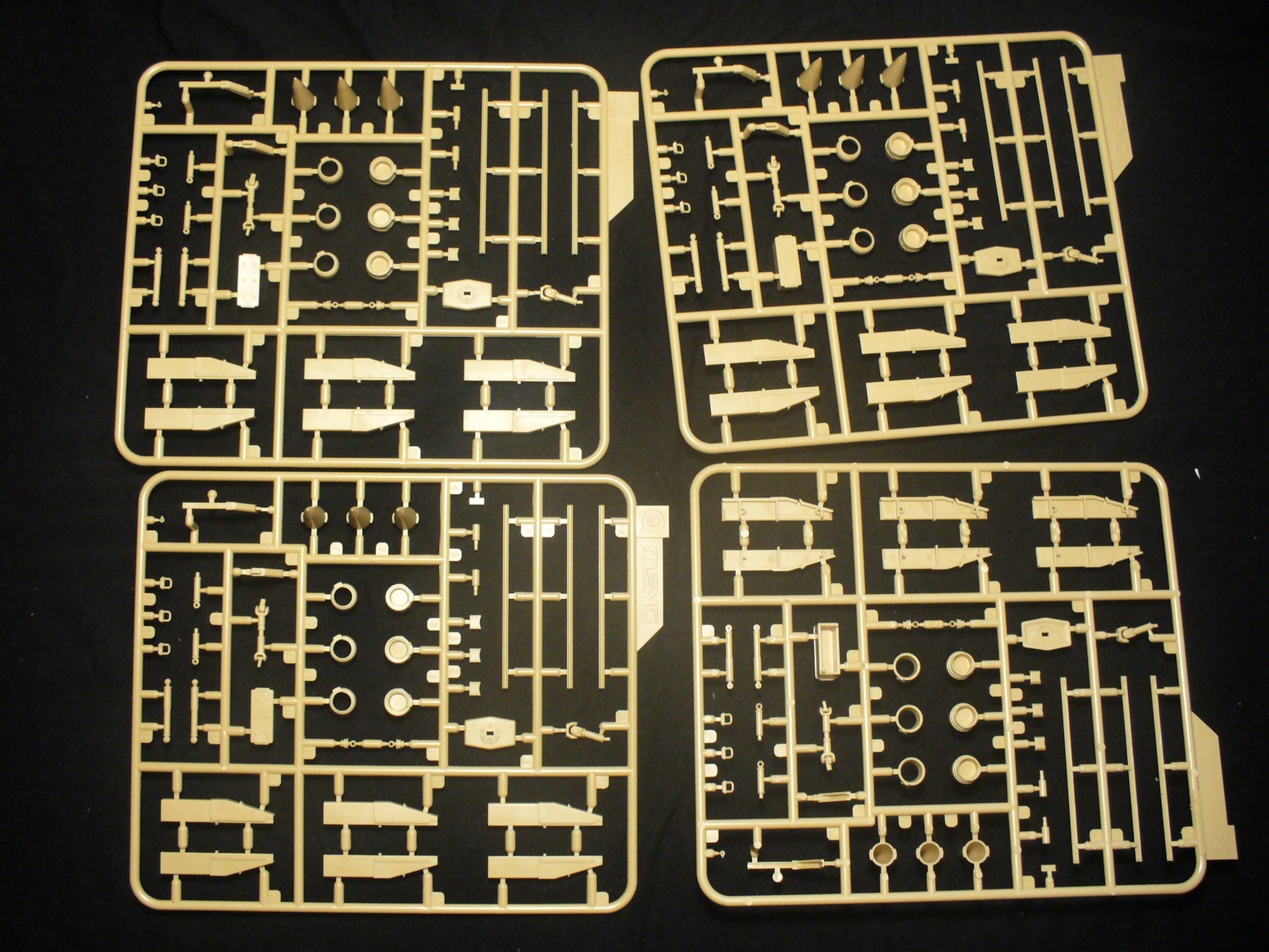 Модель производит приятное впечатление. по сравнению с моделью от трубачей более детализированный двигатель, гидротрансмиссия и раздаточная коробка. правильный угол переднего скоса рамы. Облоя нет. но много следов от толкателей (плюс видно на фотках как будто у толкателя работала только половинка хвостики торчат). насколько будут критичны будут следы, видно уже будет при сборке.