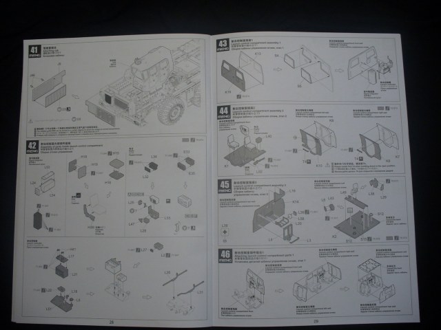 Трос дан ниткой, насколько это оправдано не понятно. направляющие можно сделать либо с открытой носовой частью, или закрытой крышками. один из литников (крышки направляющих, утеплители радиатора и др.) сделан из гибкого пластика. Прозрачные детали сделаны хорошо, + дополнительно упакованы в пленку.на последней фотке колеса для сравнения слева от трампетера, справа от менга. колеса от трампа представляют собой шины В-77 что довольно странно, для Scud-а это нормально были с такими, но более поздние уже были с ВИ-203. из дополнительного две платы с травленными деталями, деколи и металические наклейки для зеркал.