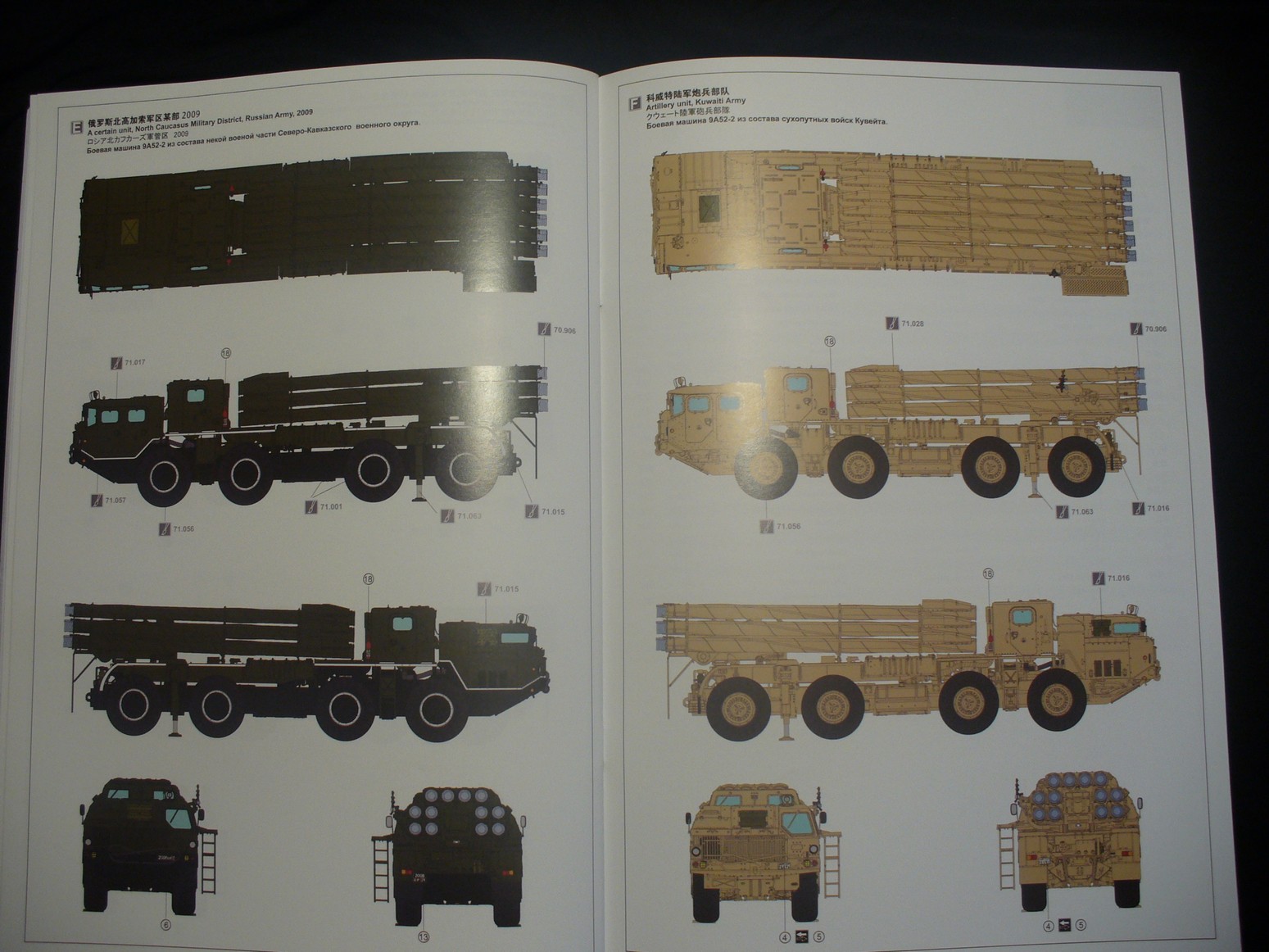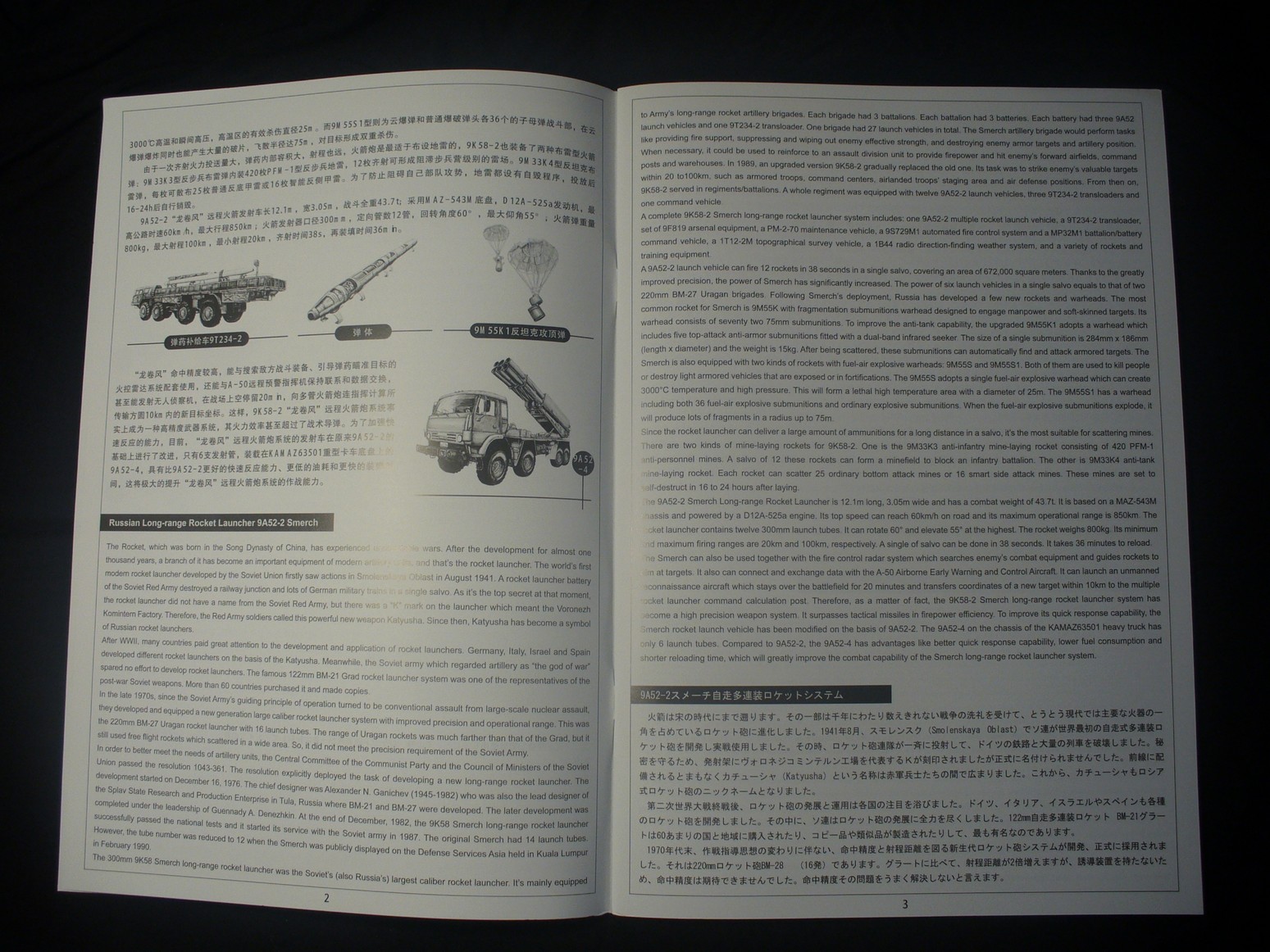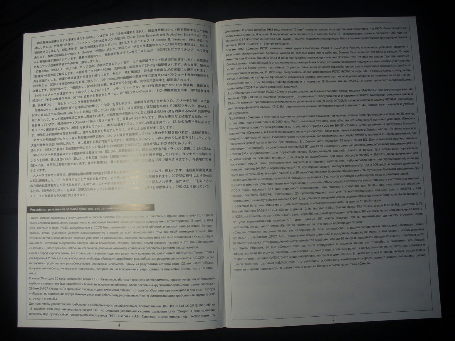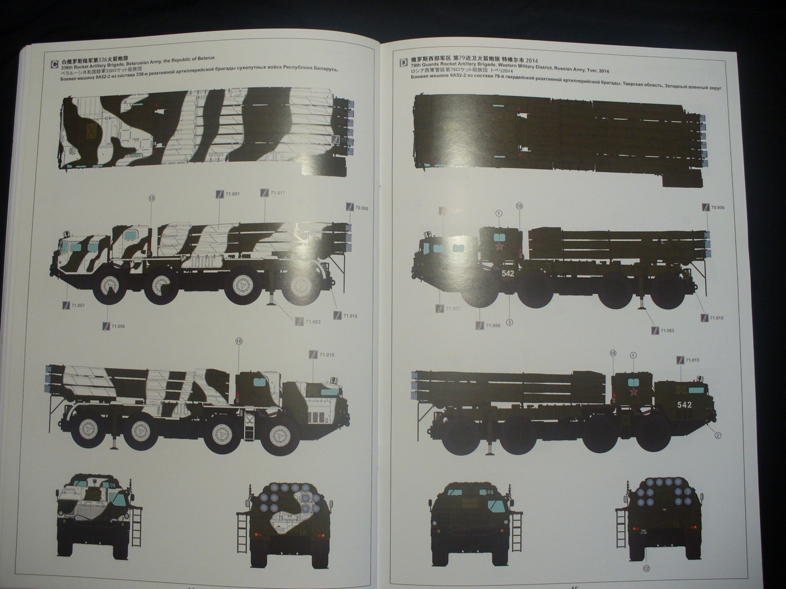 Инструкция солидная книжка в 48 страниц. вначале краткая история развития РСЗО и описание "Смерча". также даны 6 вариантов окраски.