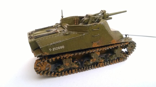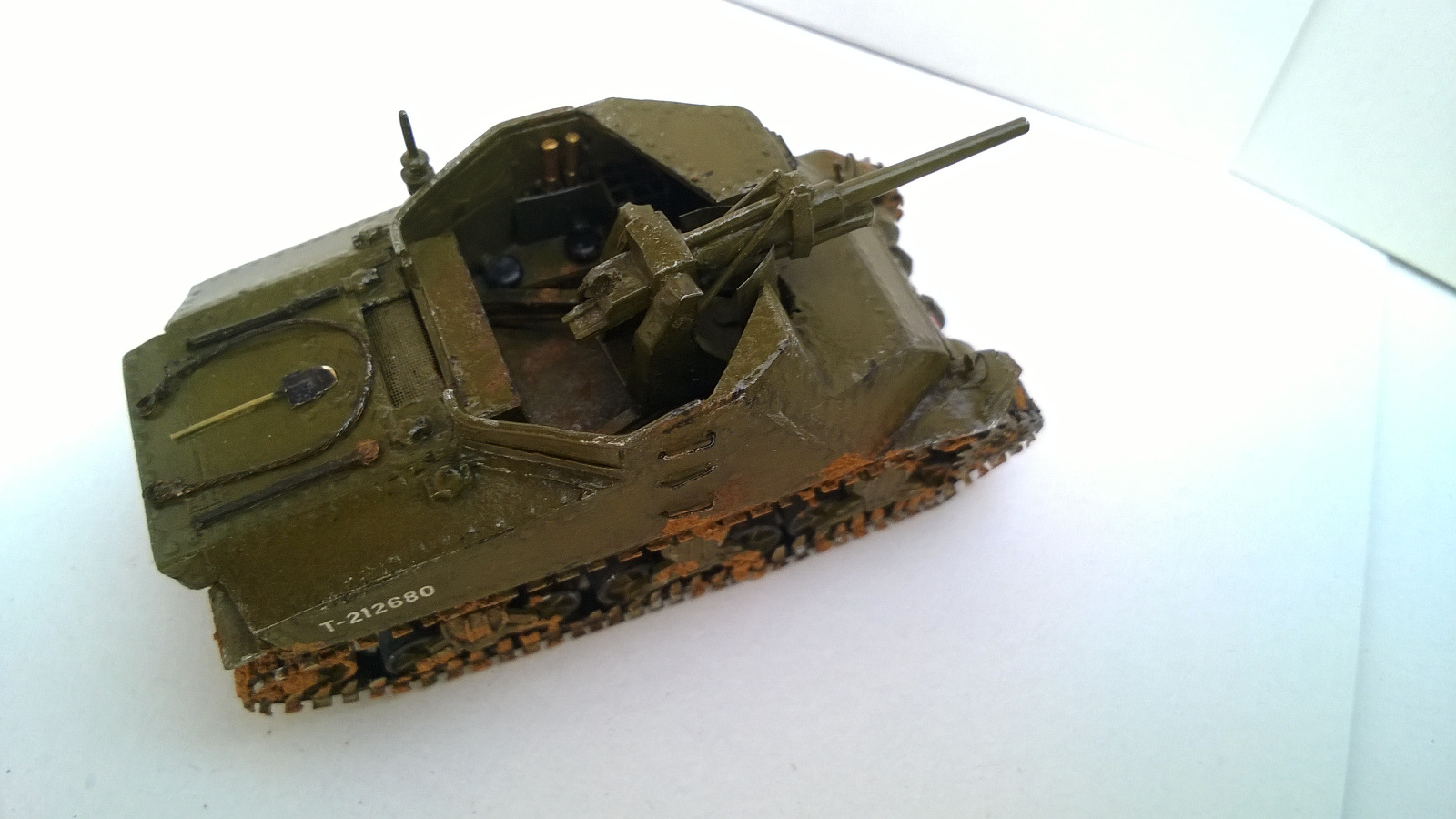 Модель собрана из разных подручных материалов в основном от упаковки, и некоторой мелочевки остатков наборов UM. Траки из картона. Окраска кистью Звезда и Тамия, привязывался к фото окрасок м7 прист. Клепка - клей пва. Информации по прототипу нашел мало, в основном использовал чертежи танка м3 и поглядывал на прототип в wot.