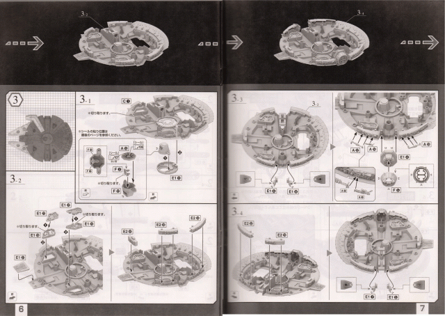 буклет-инструкция понятна будет и ребенку. изучая ее я наткнулся на страницах на рисунки светодиодов(один на кабину, один на открытый трап, и шесть на двигатель) и слот под батарейки который прячется с нижней части тарелки. в наборе ничего подобного не наблюдается кроме направляющих под диоды что наталкивает на мысль о дополнительном наборе с электрикой или чем то в этом духе, но это рассудит только время!