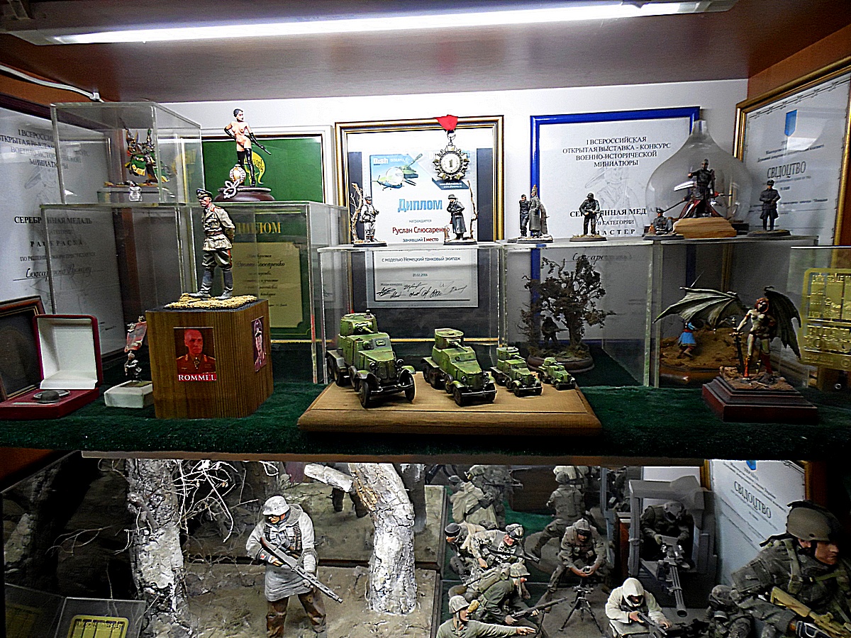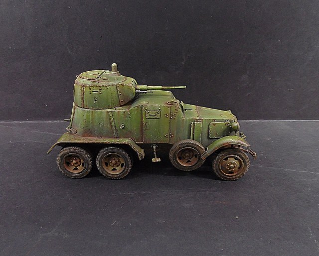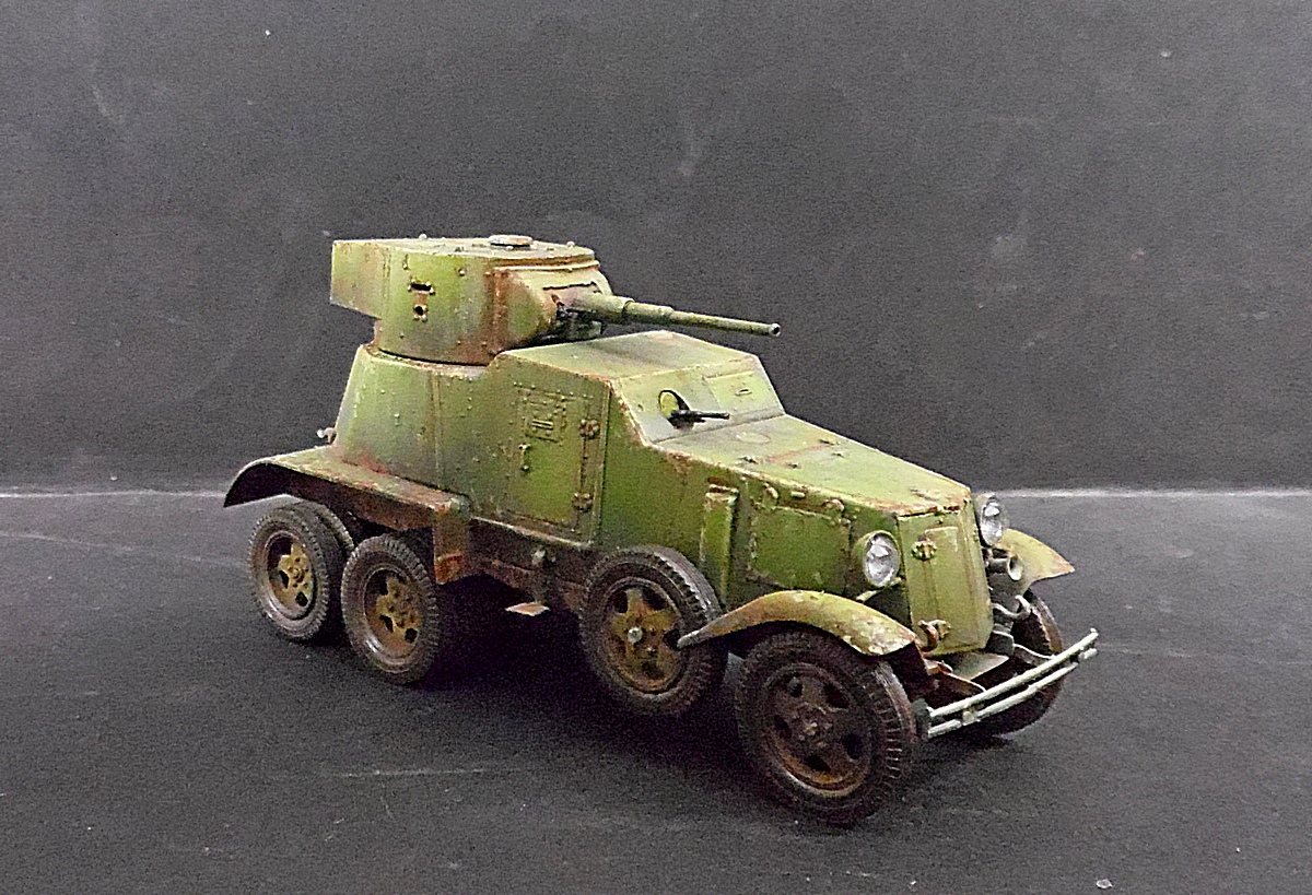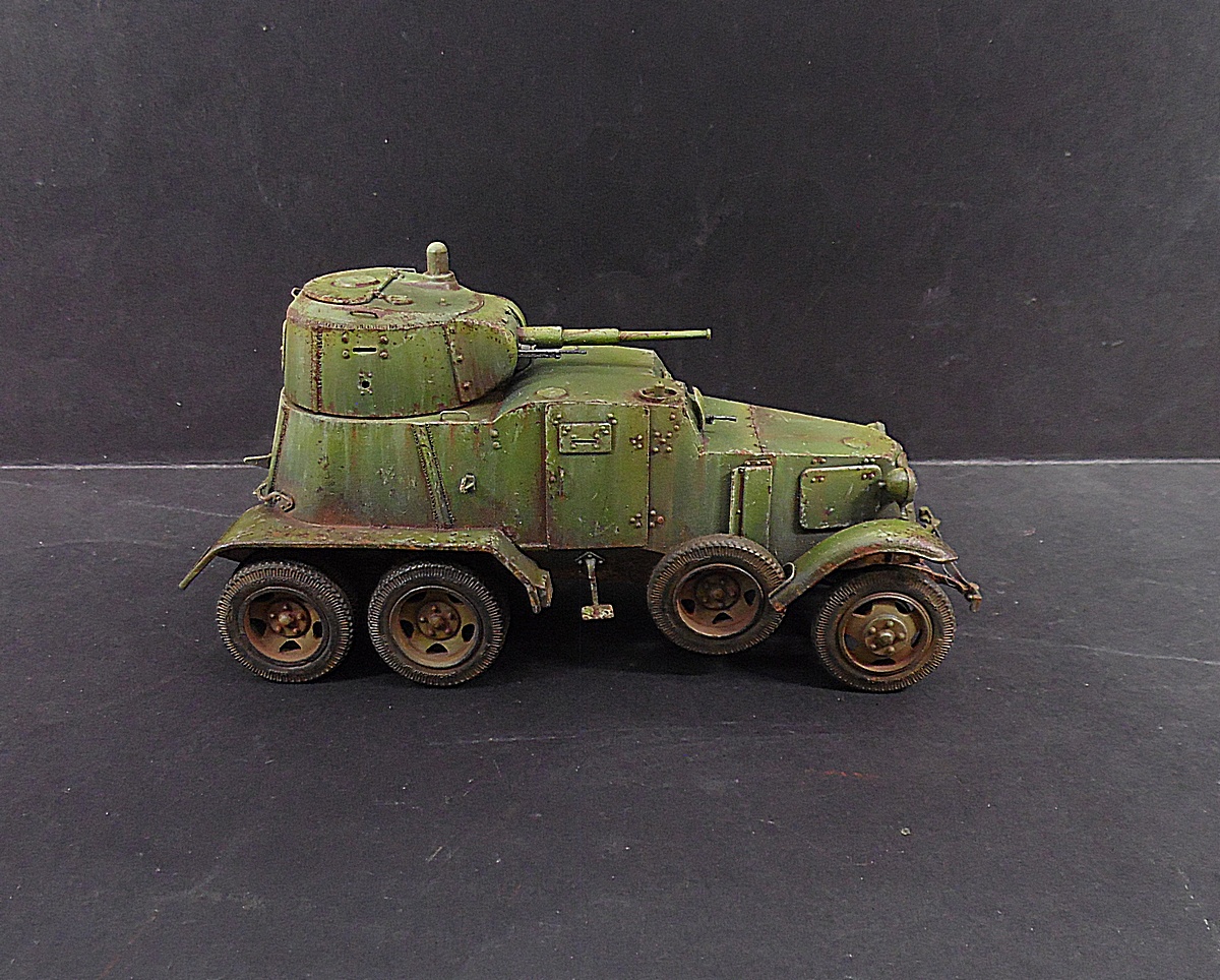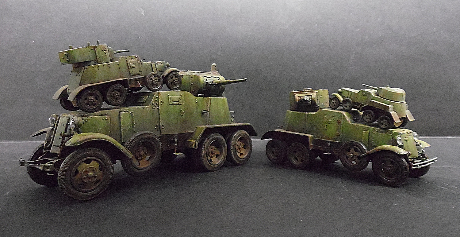 Имея в своей коллекции ещё не собраных модели бронемашины БА-6 и БА-10 в различных масштабах - 1/35 ; 1/48 ; 1/72 ; и 1/100 задумал интересную , шуточную идею - сделать из этих моделей " Семейку БАшек ". В матчасть сильно не вклиниваюсь , добавил лишь недостающие заклёпки , сделал самодельные фары , расписывал в своей улюбленой манере " БУ " - цветовая модуляция , сколы и потёки - я их так вижу. Готовые поставил на одну подставочку - готово !