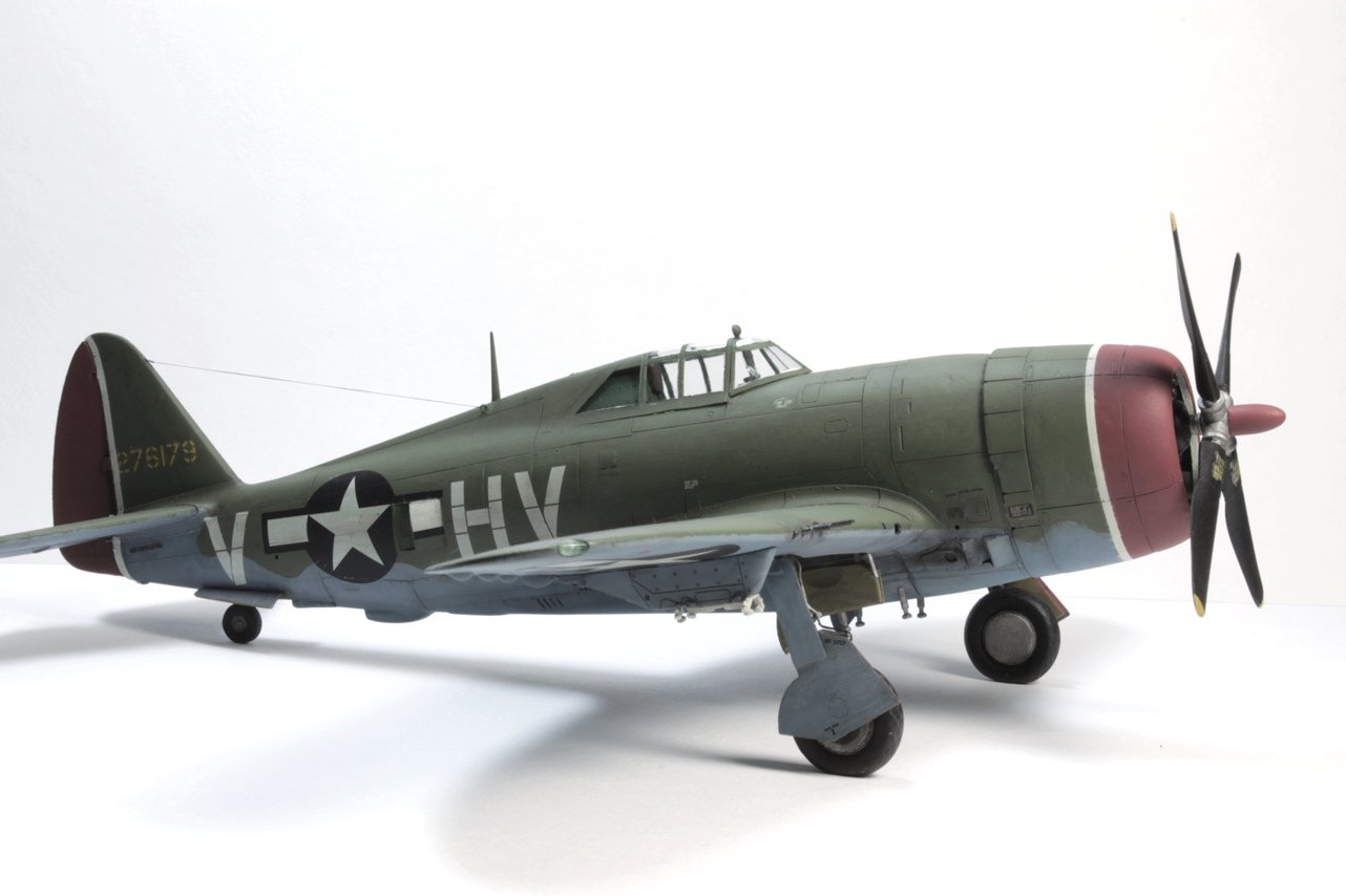Далеко не новая модель от Хесгавы, но не смотря на возраст приятна в сборке и формах. Тот самый Тандерболт. По работам - выпилены рули высоты и направления, местами сточены толщины пластика, пулеметы иглы, проволока в ниши и шасси, в общем, без доп наборов. Окраска кистью, Валехо, матовый лак Тамия из баллончика. Всем приятного и спасибо за внимание!