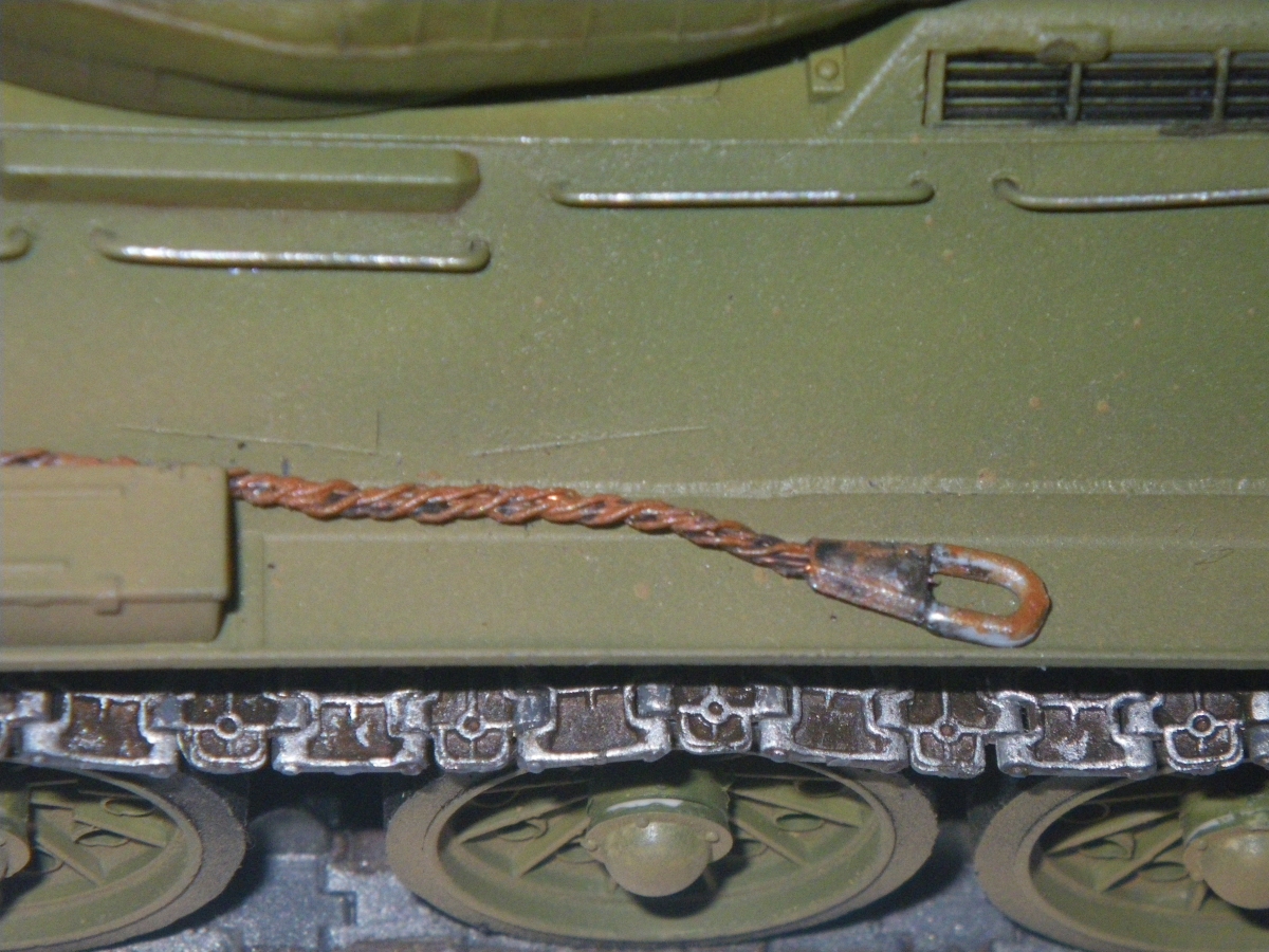 Траки - Макет, трос - проволока, пулемет - игла. Краска - АКАН, смывка - масло.