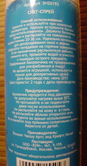 А по моему ни чего так снег! И на балоне написано, что предназначен для декорирования стекла, значит долговечный! Спасибо Михаил!