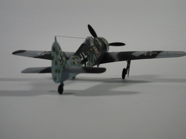 Эту модель уже выкладывал. Критика была разгромной... Модель переделал. Изменил цвет лопостей с черного на черно-зеленый, цвет колесных дисков с шарового на черный, сделал антену и свастику. Пятна на фюзеляже изменил. Сфотографировал в нормальном качестве. Вот что получилось