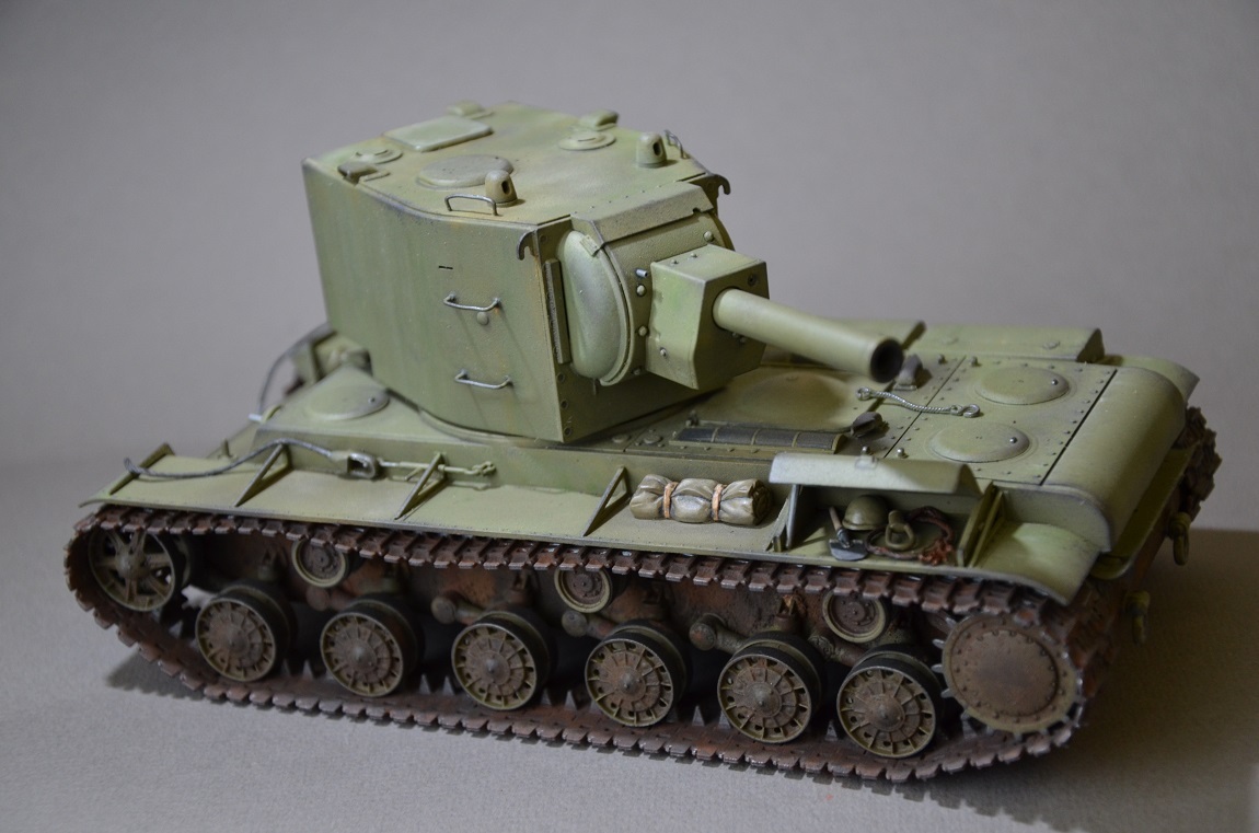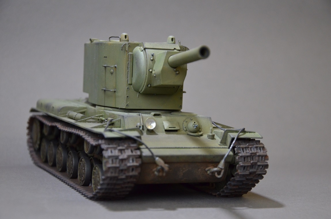 Доброго времени суток уважаемые посетители сайта !!! Представляю вашему вниманию модель советского тяжелого танка КВ-2 от Звезды. Модель собиралась около трёх месяцев, без особого фанатизма. Набор древний и никакими изысками не отличается. Доработок особо никаких не делал, по мелочи: медный трос , фара Elf, на башне поменяны поручни на метал, пулеметы из мед. игл, скатка из набора амуниции Tamiya. Красил красками Ammo Mig, пигментны Tamia, Zip, Mig. Мат.части особо не придерживался, исторической привязки нет. Желаю приятного просмотра !!!