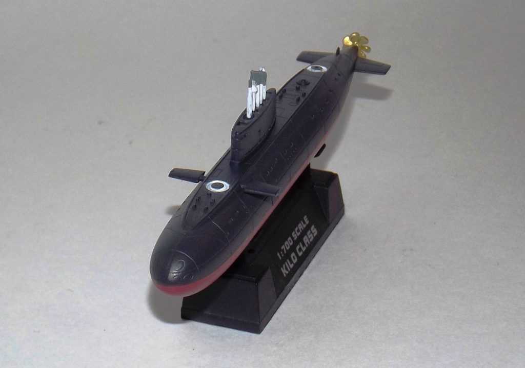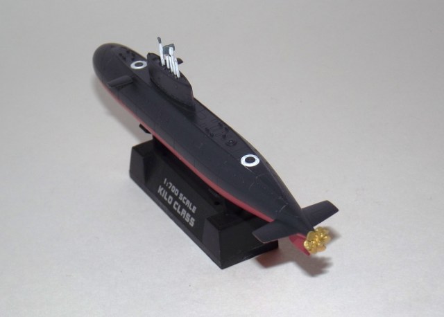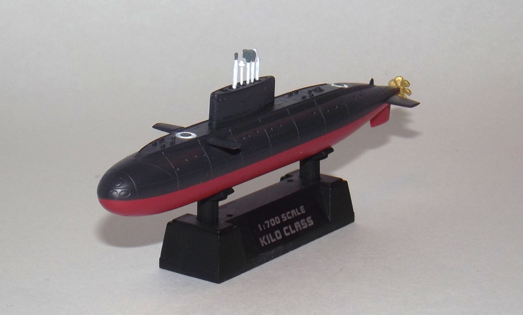 Даже в 350-ом масштабе современные атомные подлодки выглядят скучно. Лучше обыгрывать данные модели в какой-нибудь диорамке или просто на водной поверхности, но это дело вкуса.